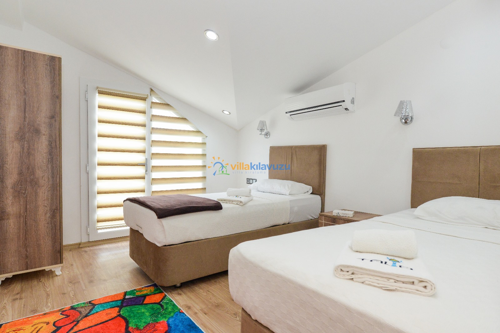 -Villamız 4 yatak odasına sahip olup 8 kişilik konaklama kapasitesine sahiptir.