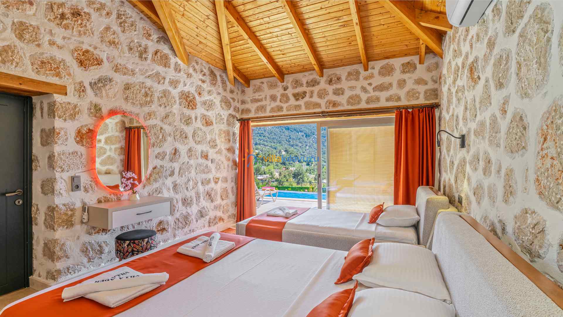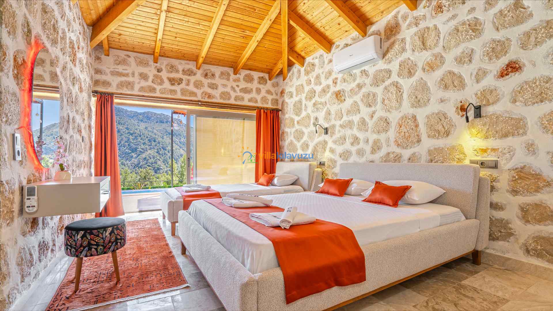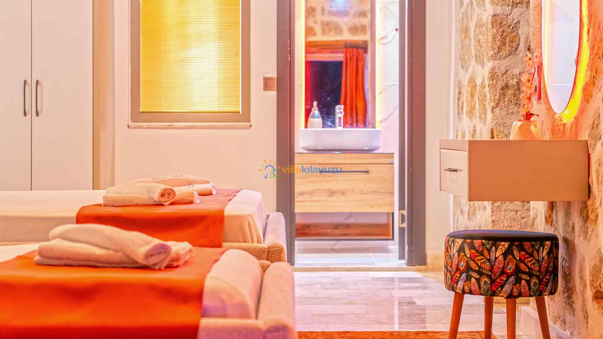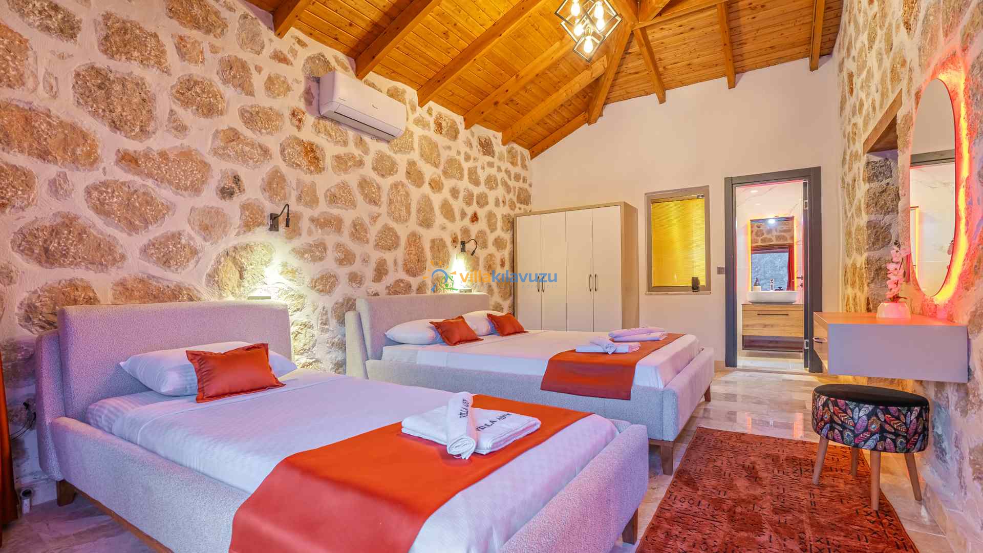 -Villamız 2 yatak odasına sahip olup 5 kişilik konaklama kapasitesine sahiptir.