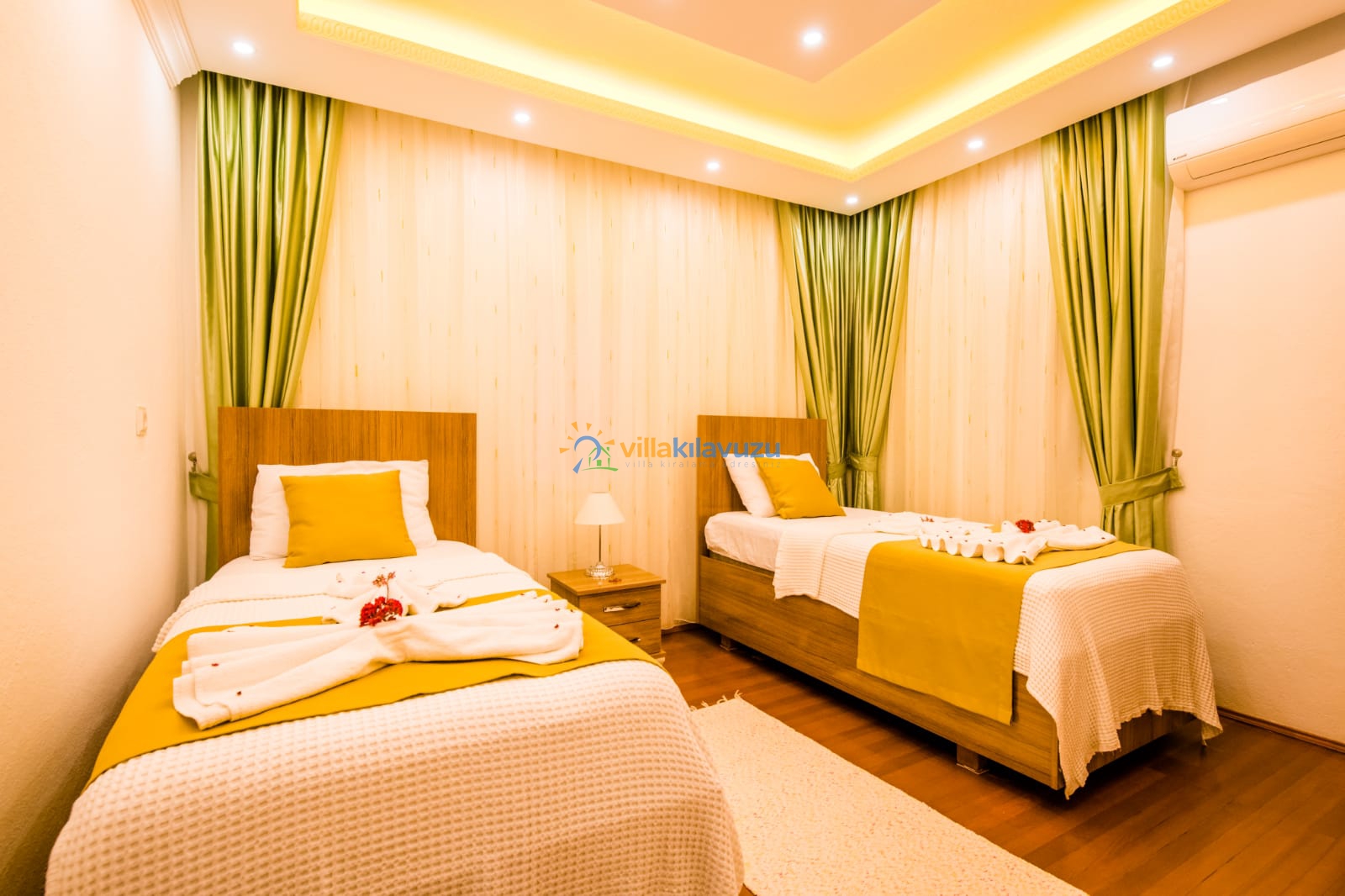 -Villamız 4 yatak odasına sahip olup 8 kişilik konaklama kapasitesine sahiptir.