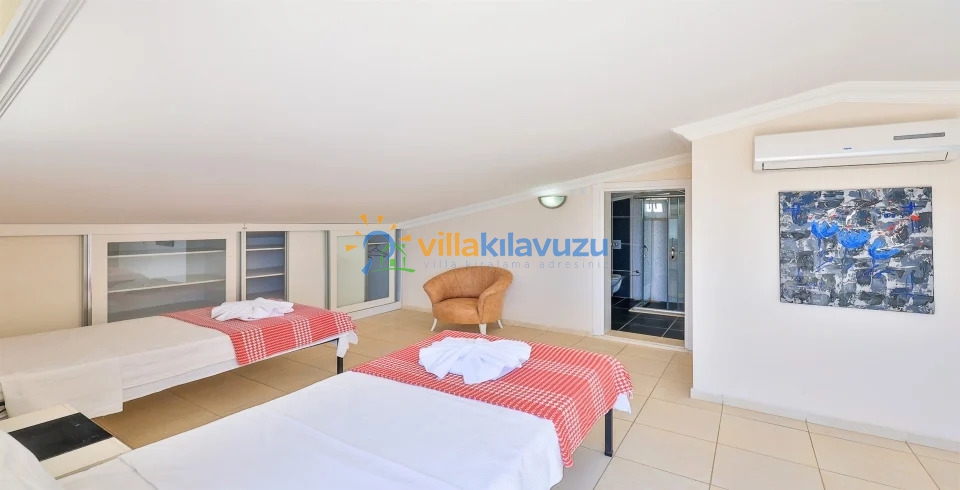 -Villamız 3 yatak odasına sahip olup 7 kişilik konaklama kapasitesine sahiptir.