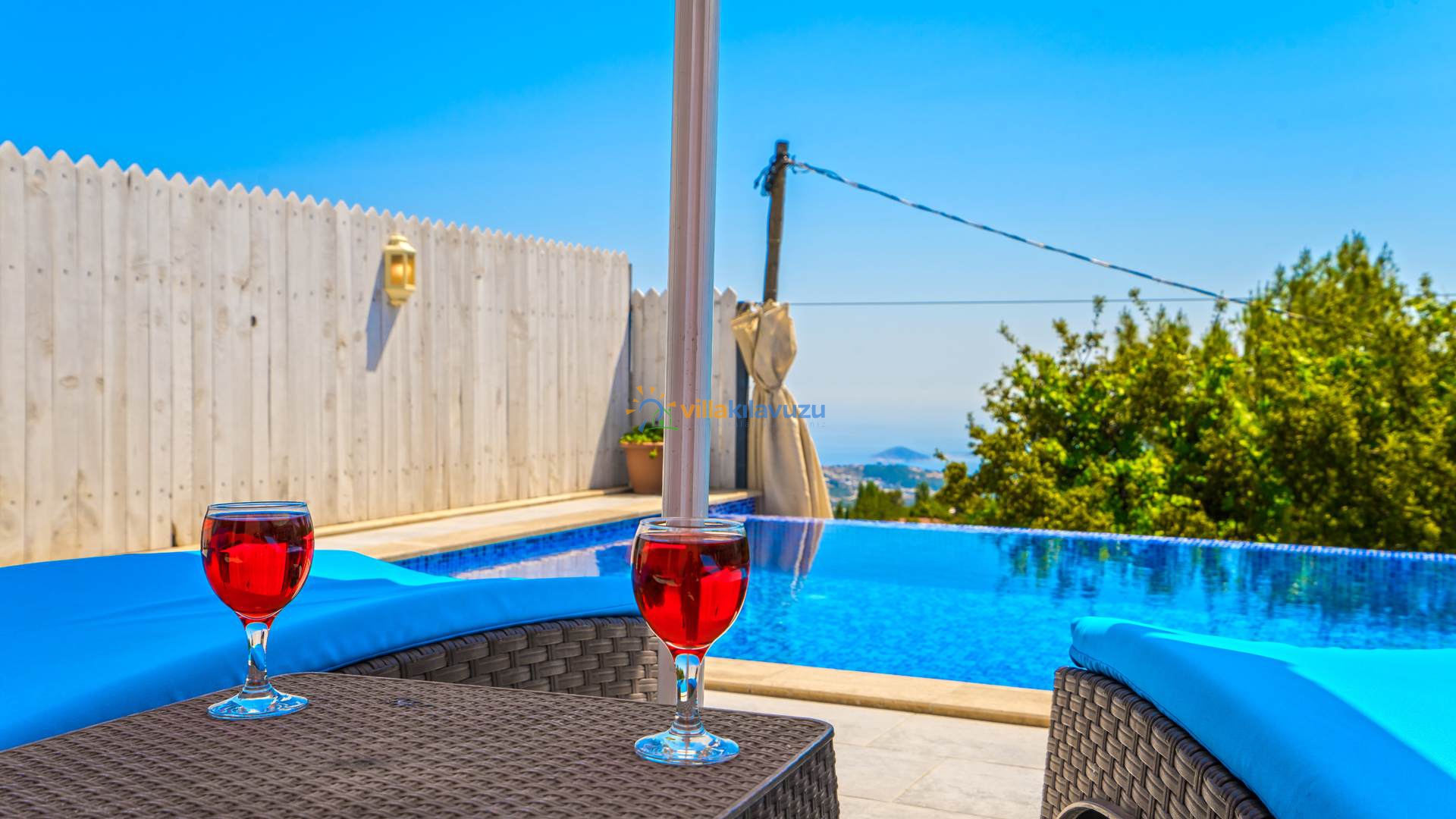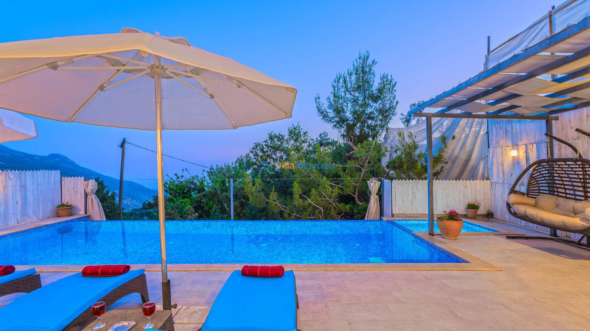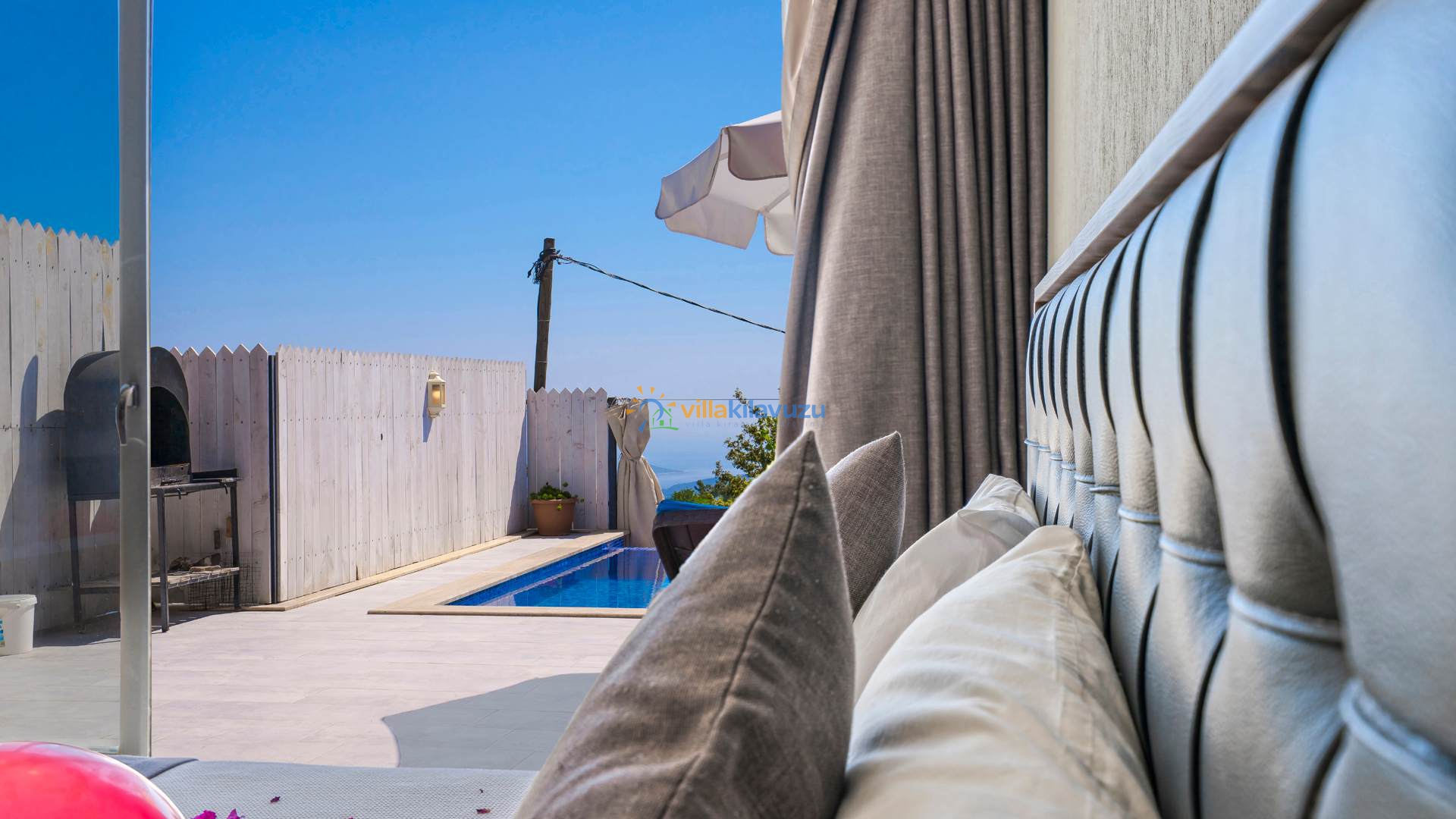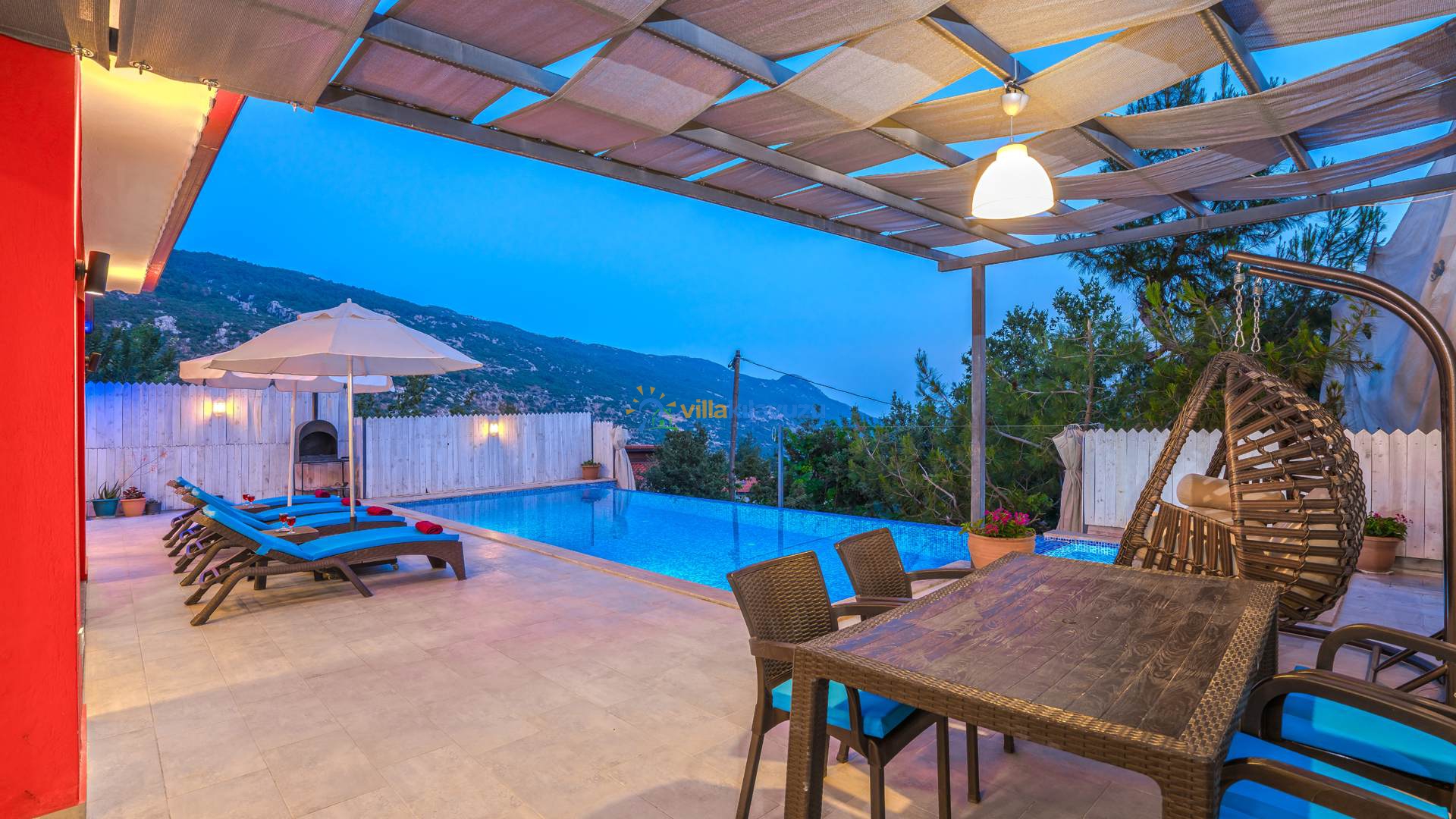 -Villamızın havuz terası korunaklıdır.