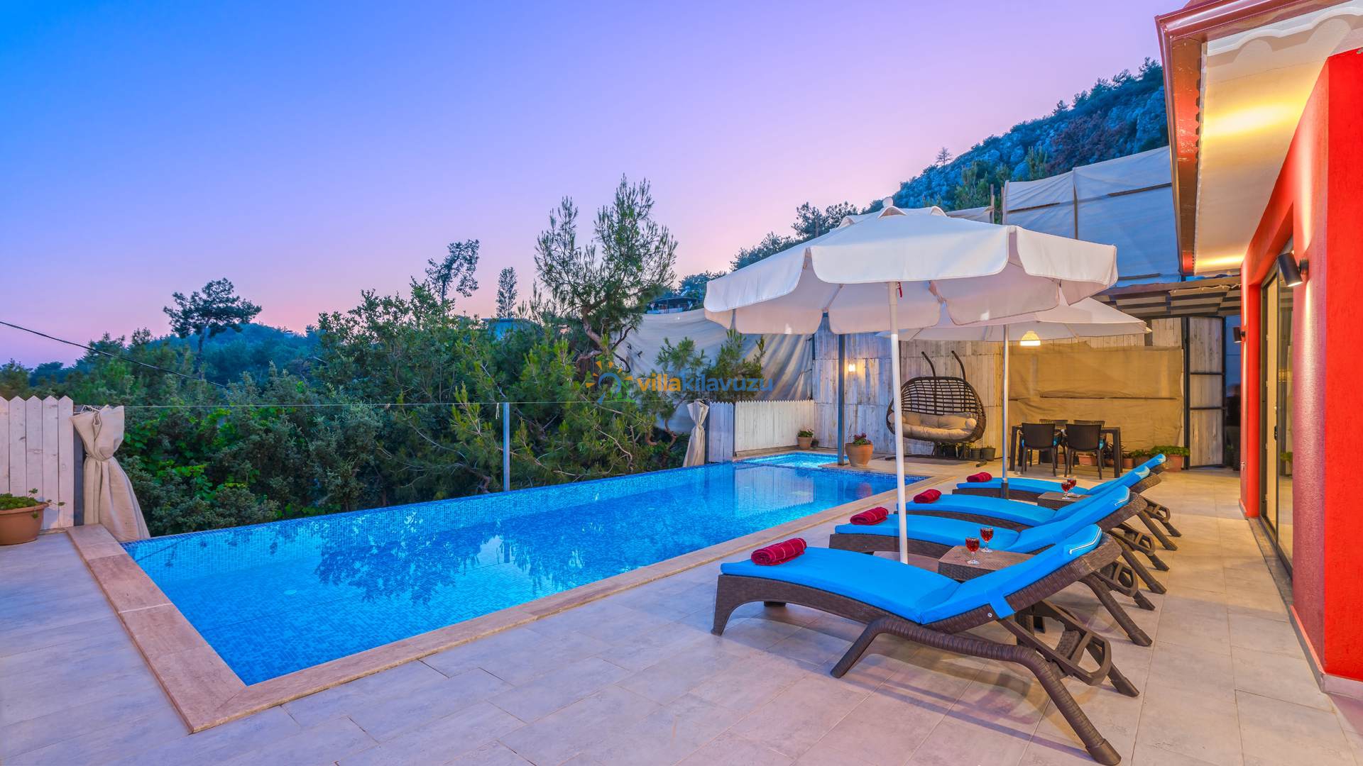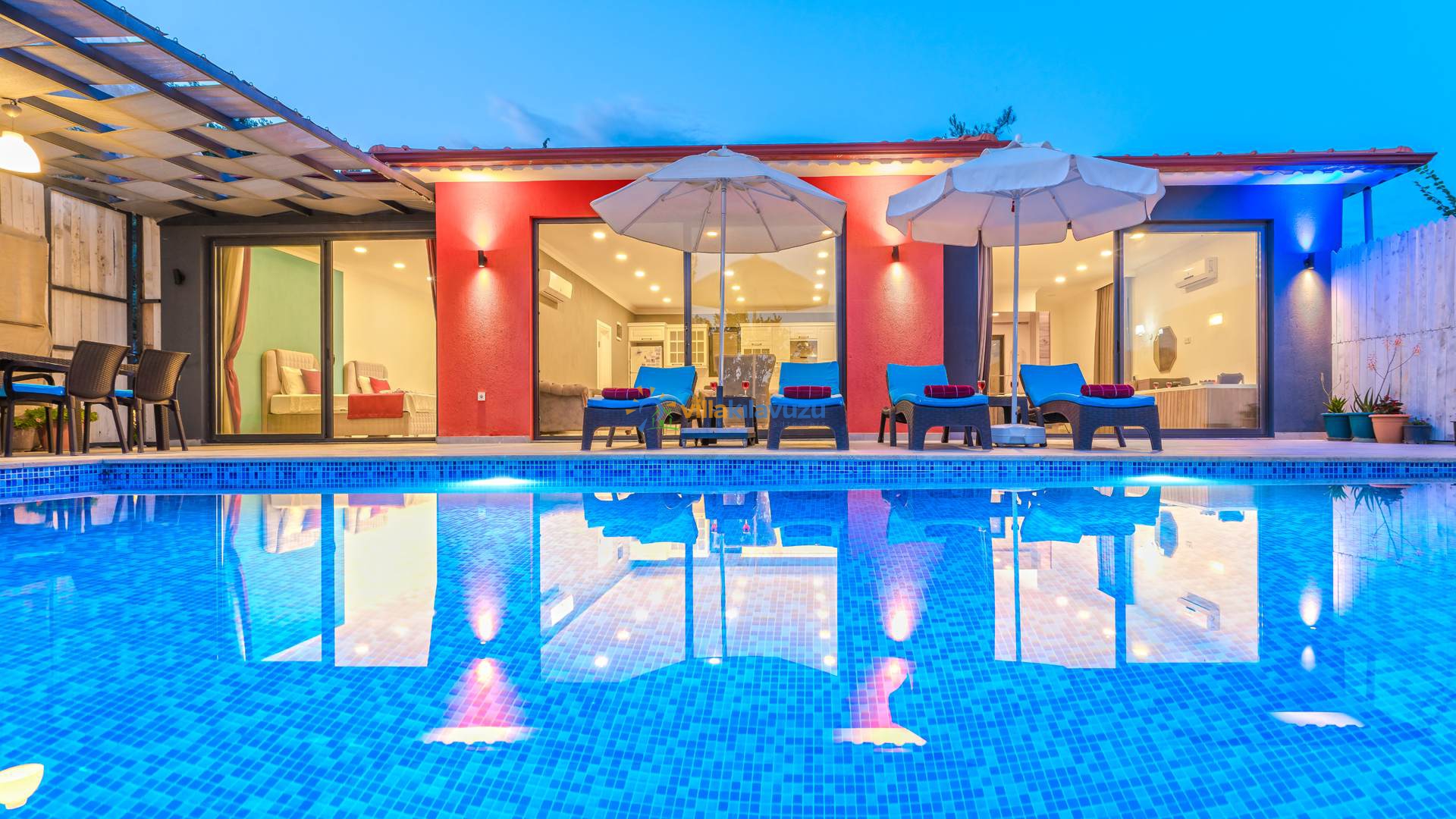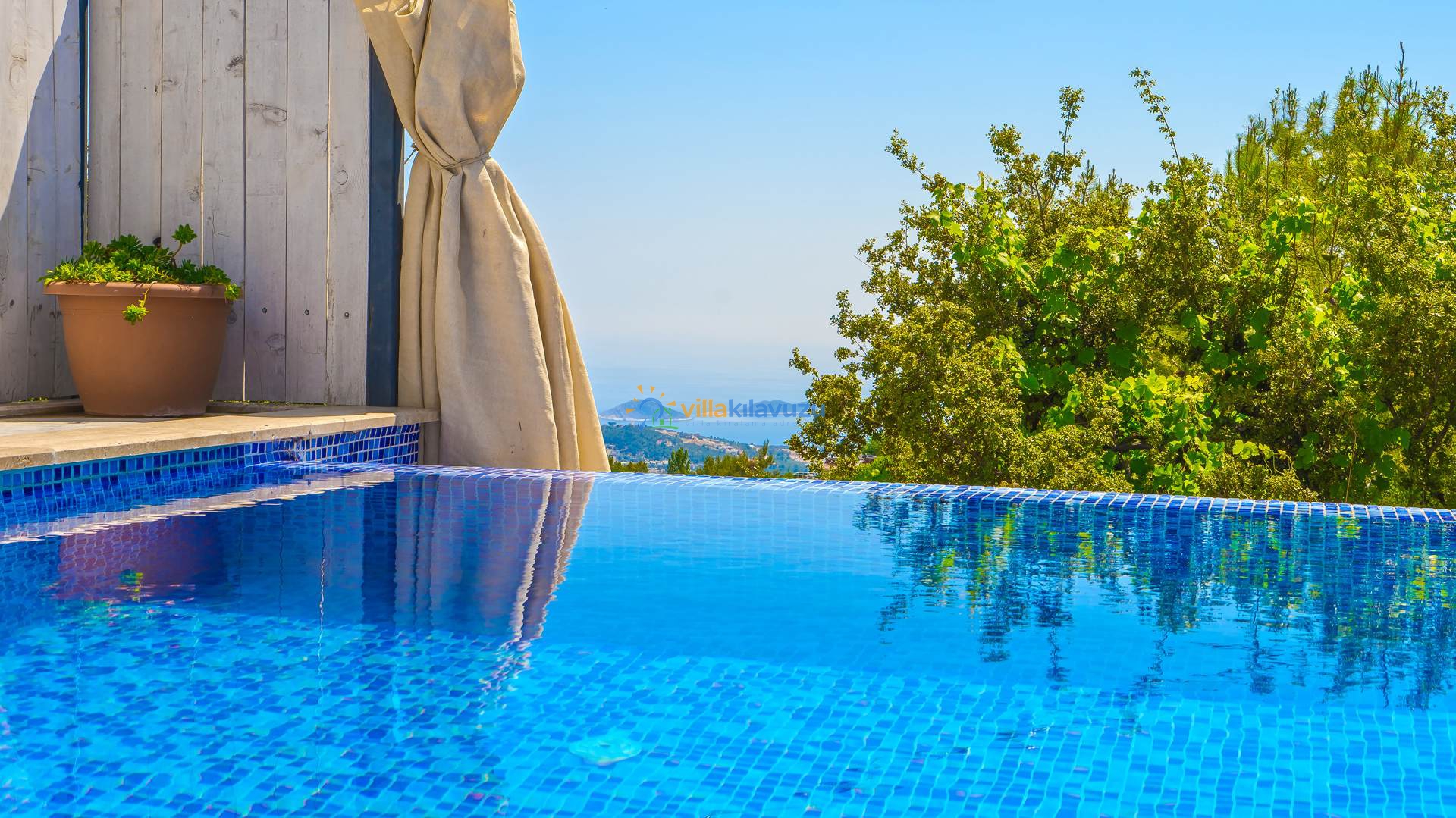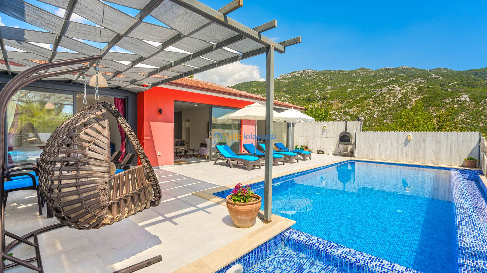 -Villamızın havuz terası korunaklıdır.