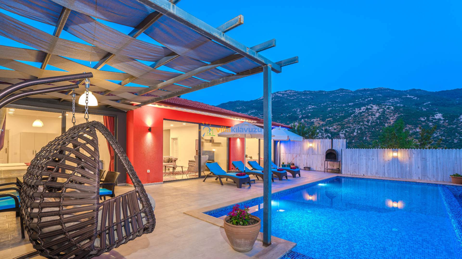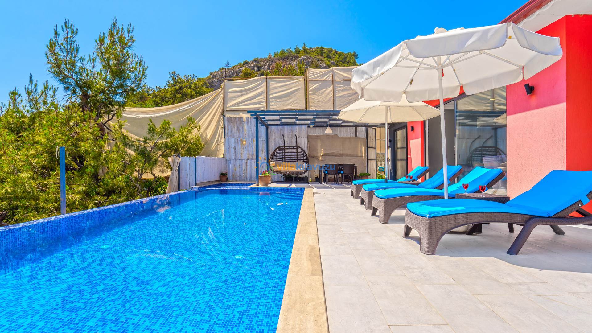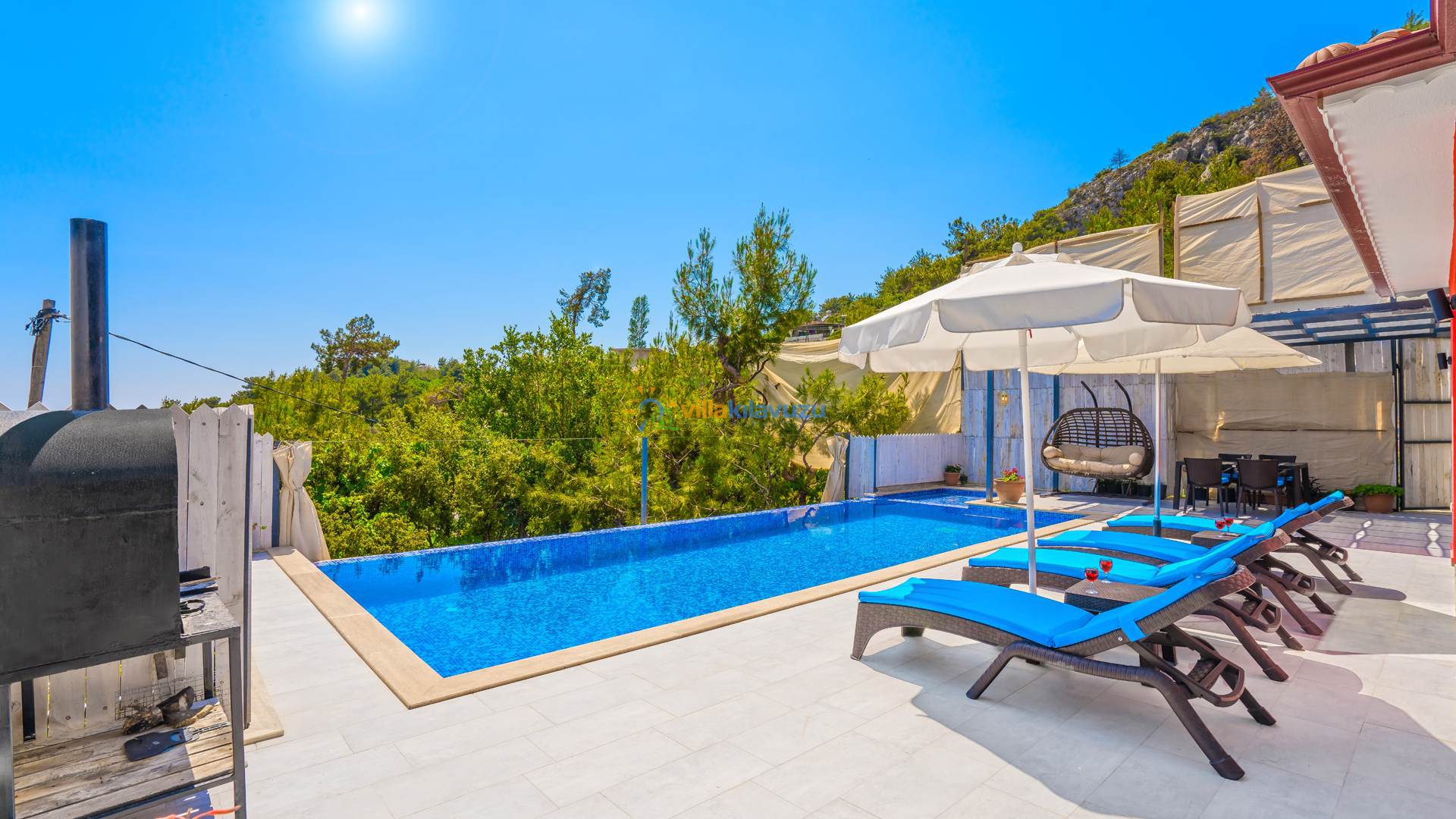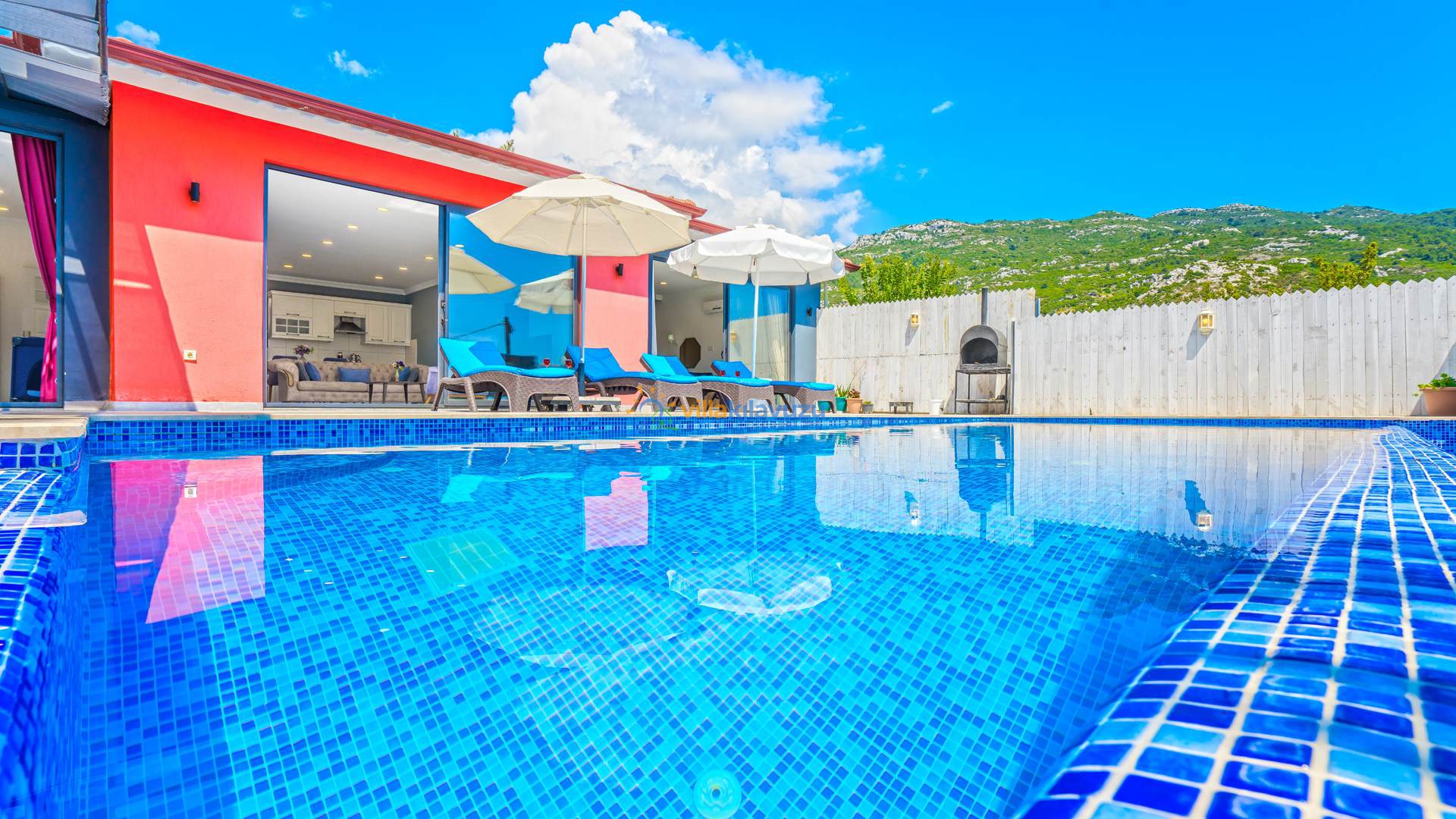 -Villamızın havuz terası korunaklıdır.