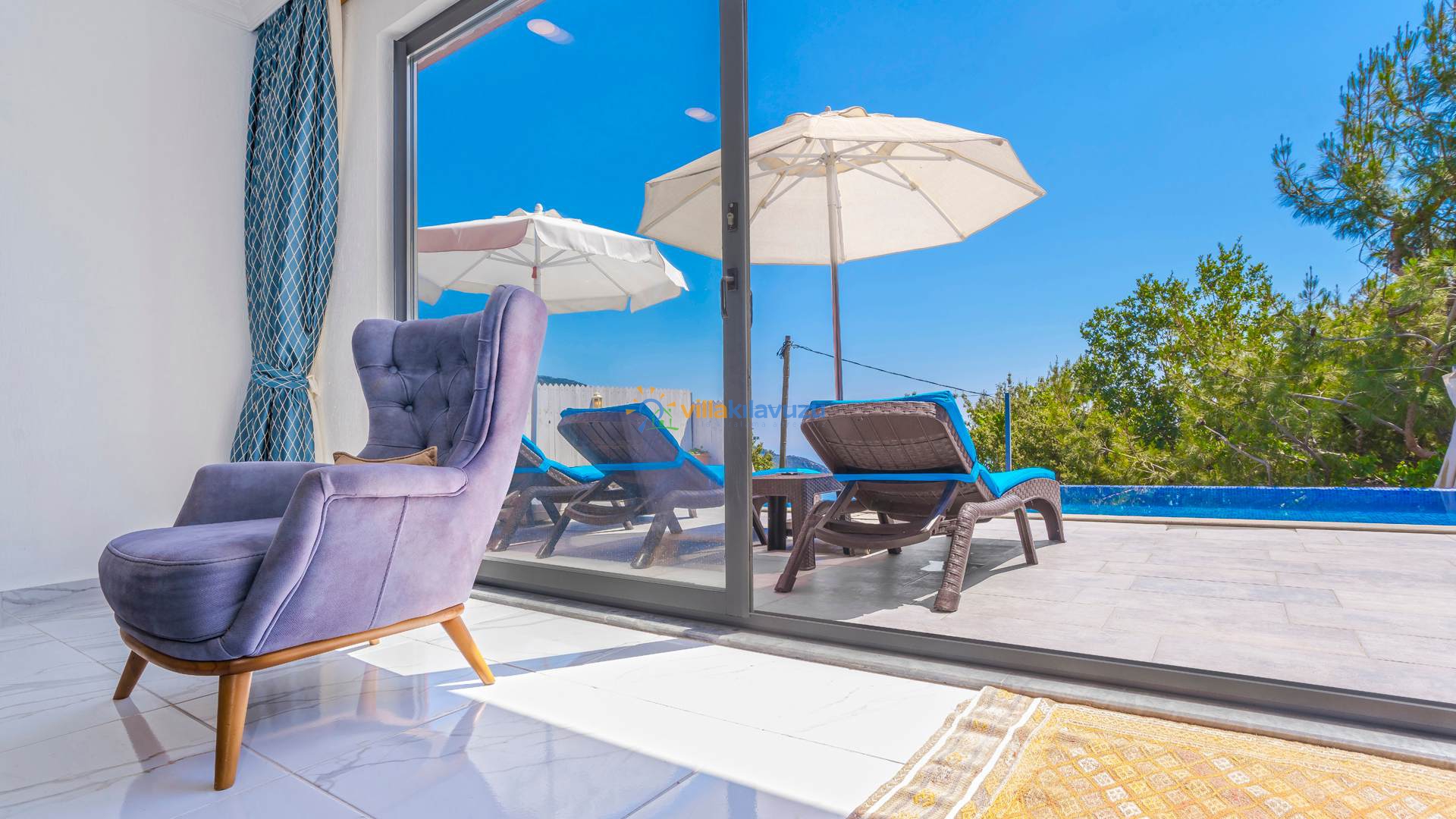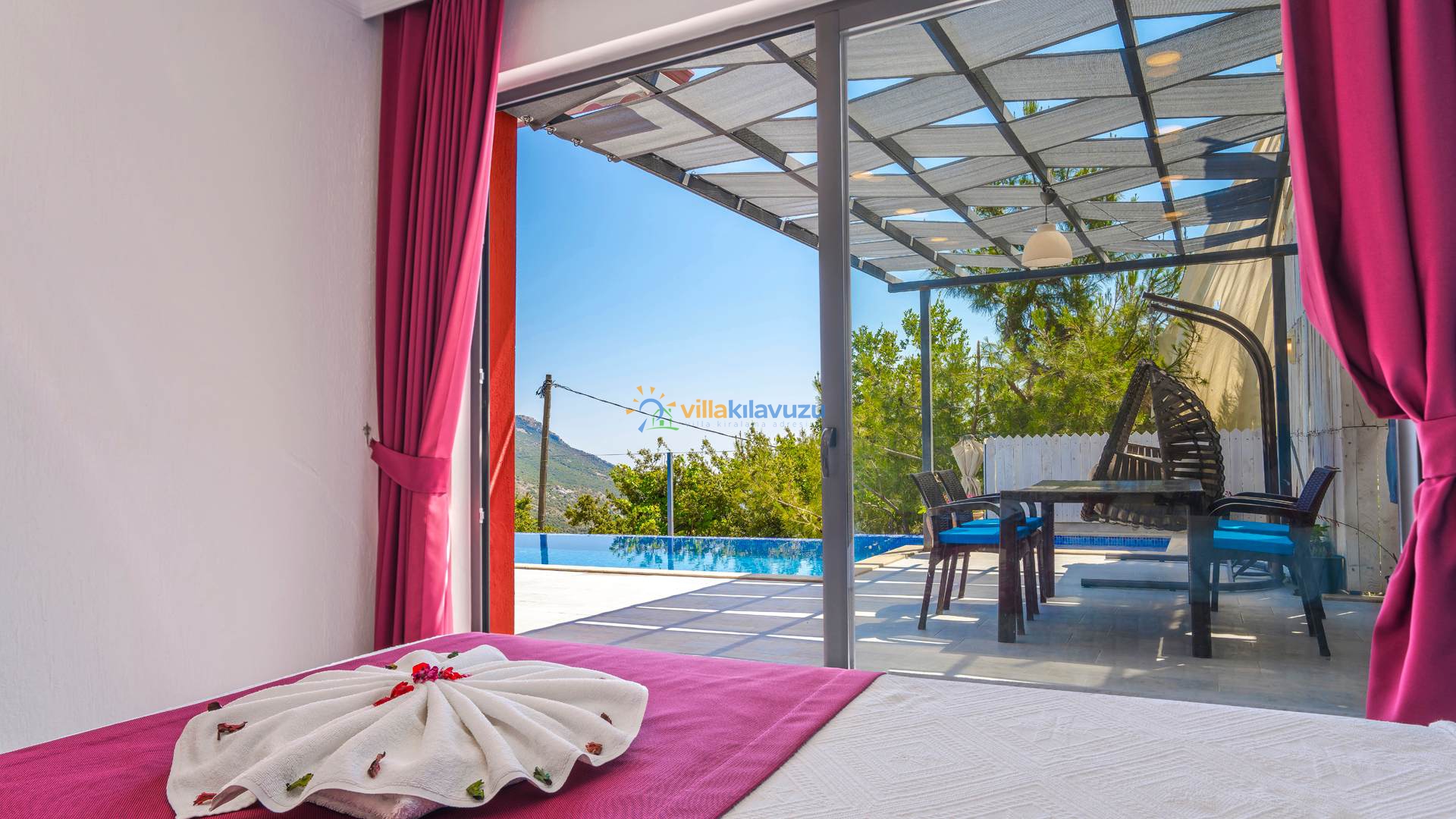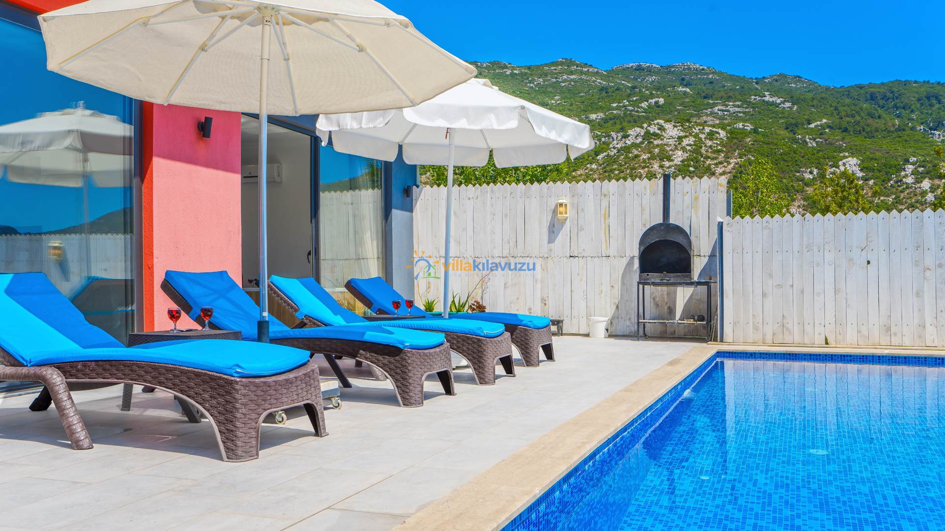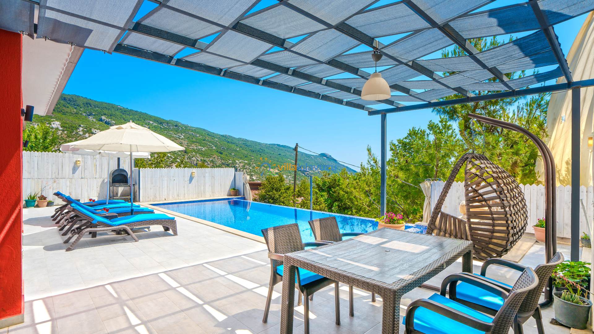 -Villamızın havuz terası korunaklıdır.