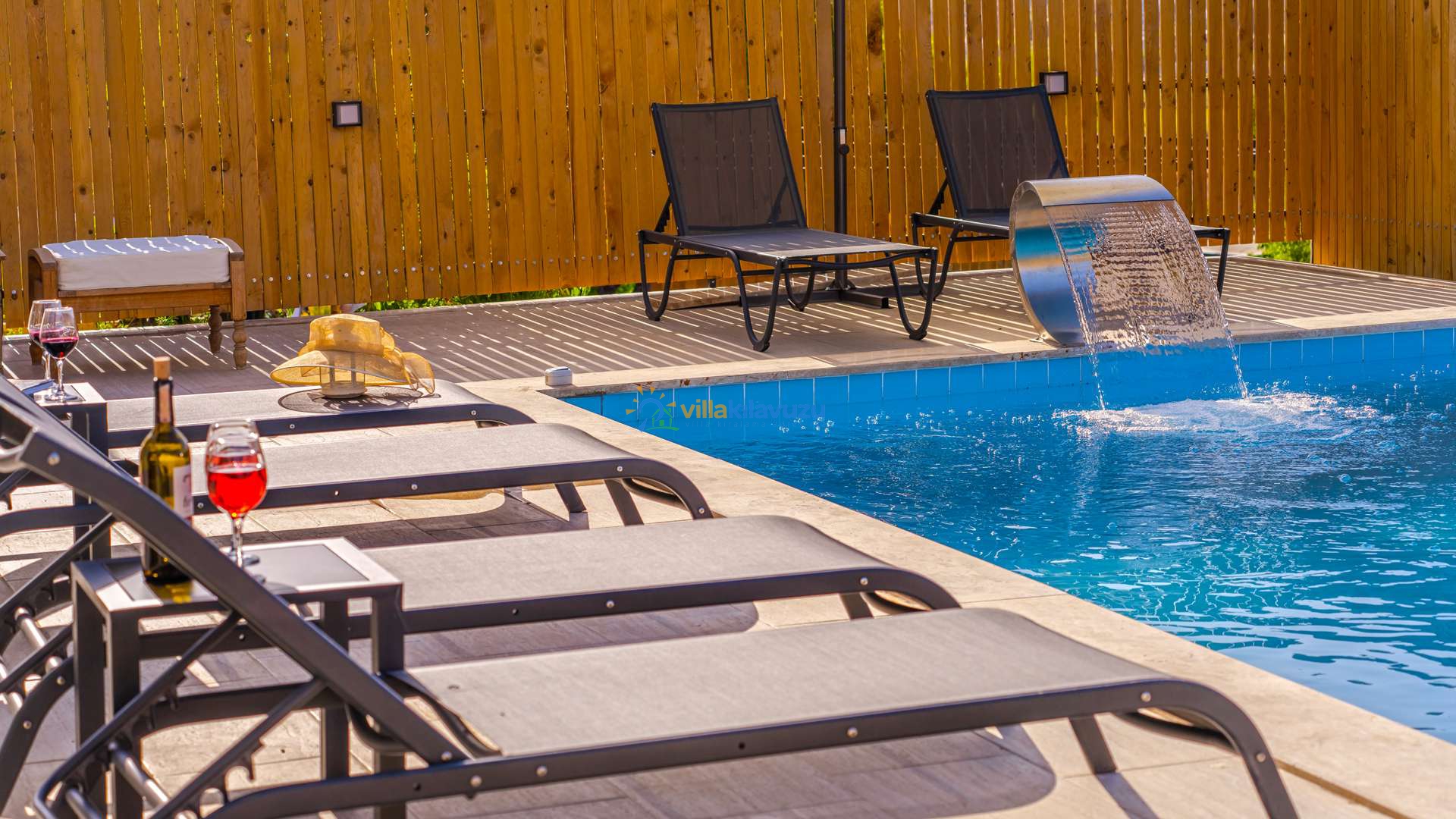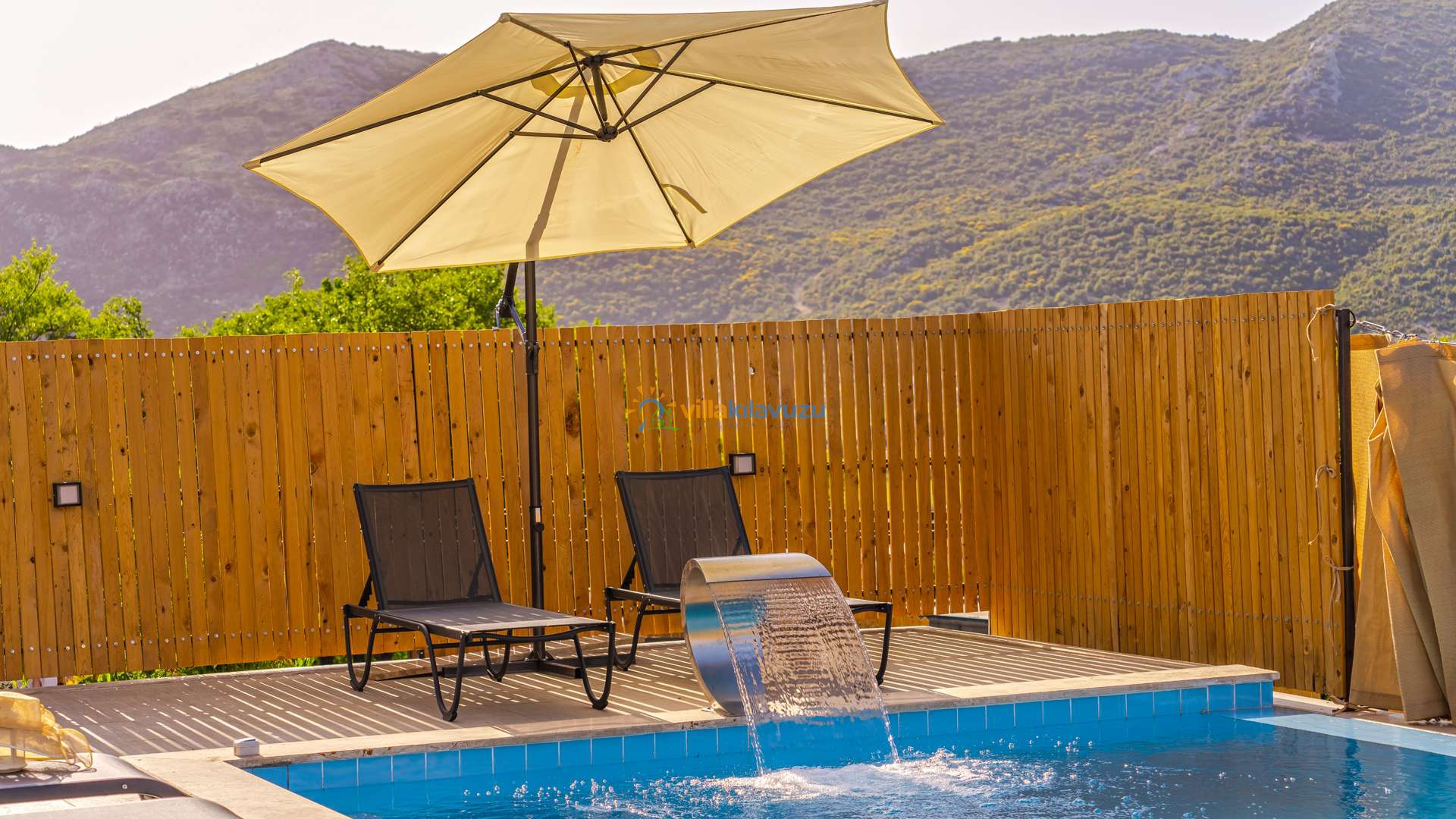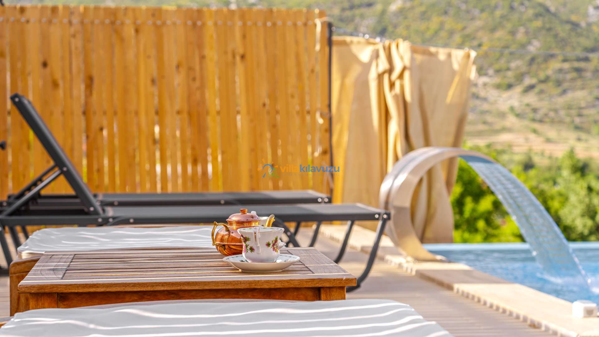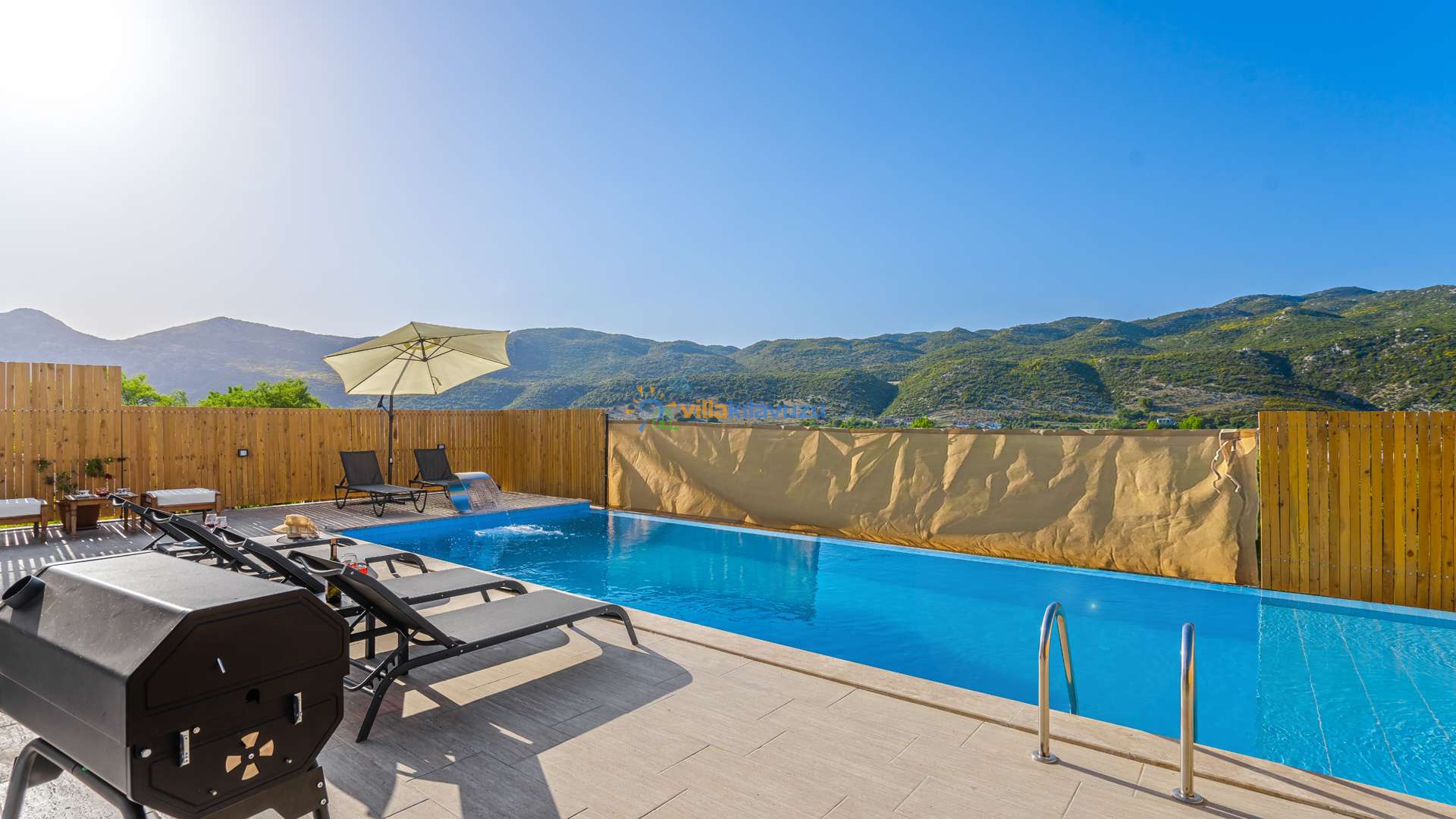 -Villamızın havuz terası korunaklıdır.