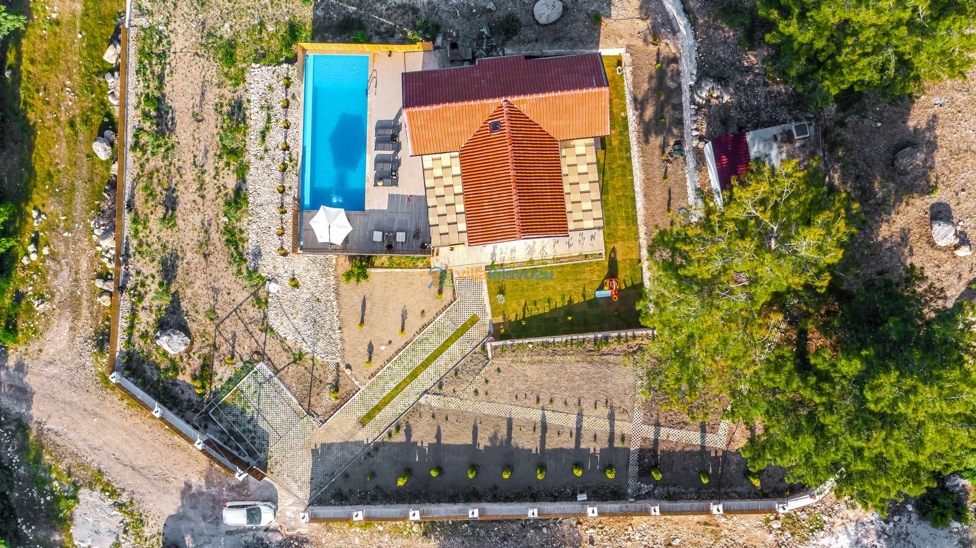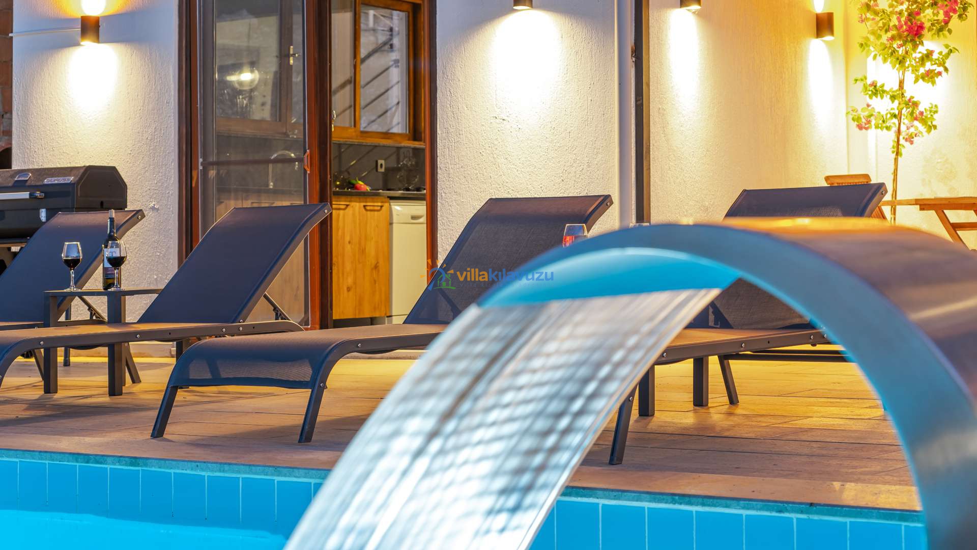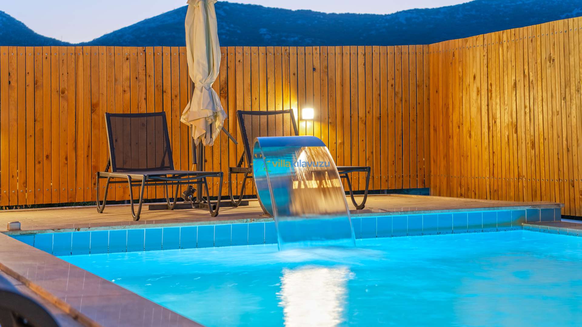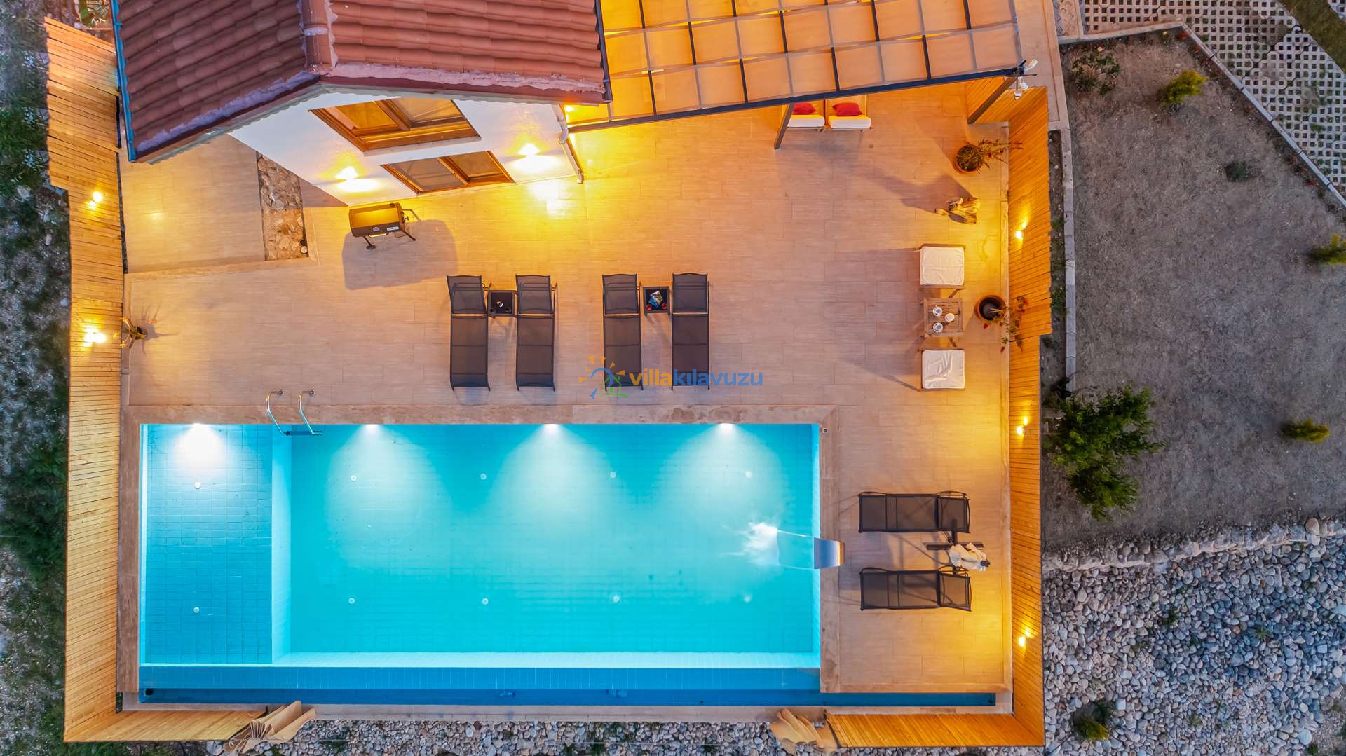 -Villamızın havuz terası korunaklıdır.