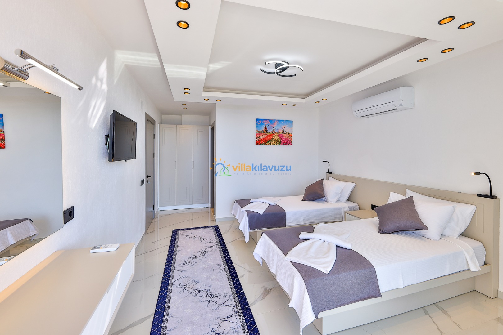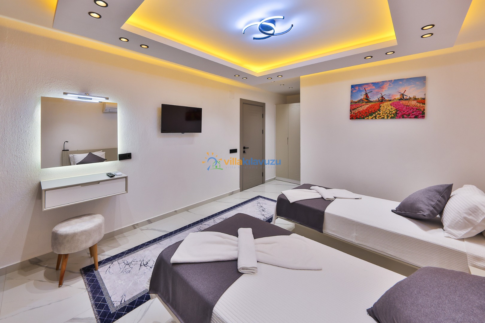 -Villamız 3 yatak odasına sahip olup 6 kişilik konaklama kapasitesine sahiptir.
