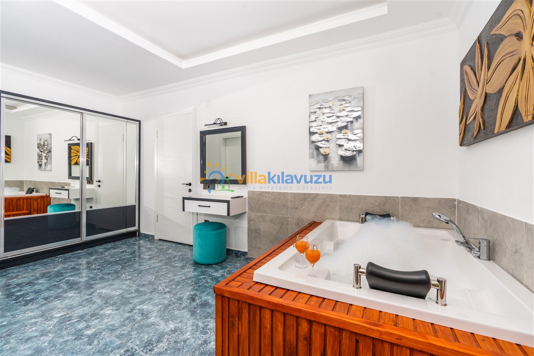 Villalarımızın/apartlarımızın Yüzme Havuzu ısıları; hava durumuna ve mevsimsel sıcaklığa göre değişkenlik gösterir, villayı/apartı kiralayan müşteri, havuzun soğuk olmasından dolayı havuza girememesinden ve bu yüzden havuzu kullanamamasından VİLLA KILAVUZU kesinlikle sorumlu tutamaz.