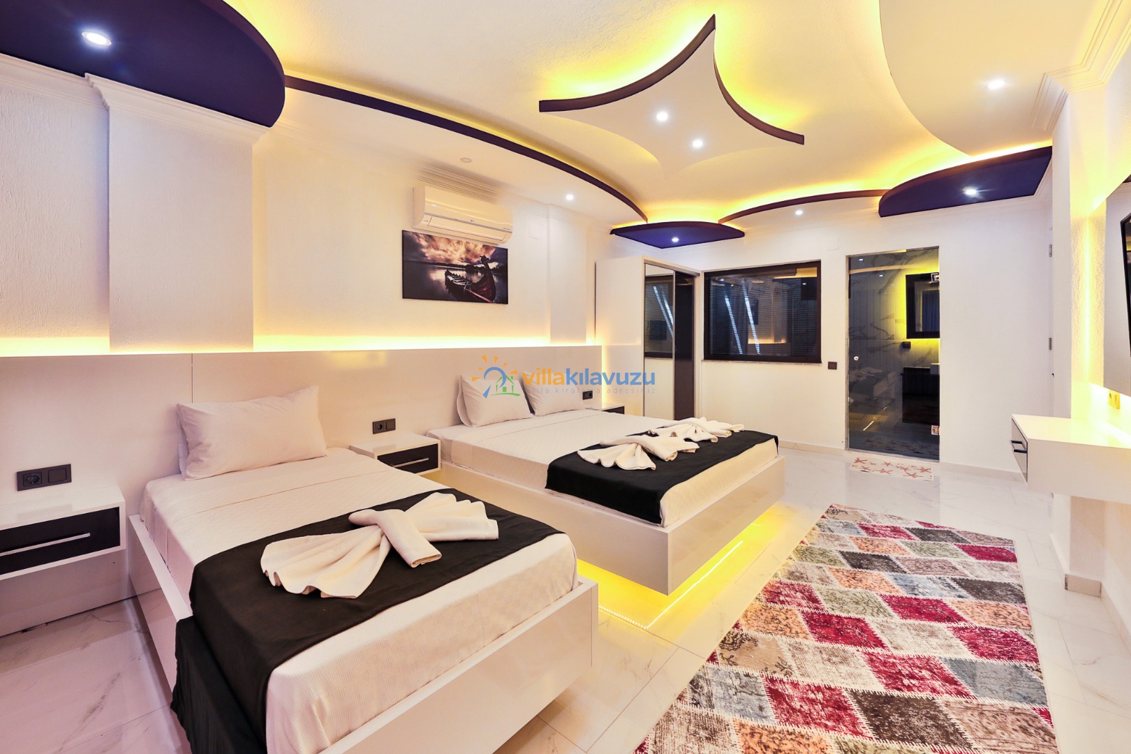 -Villamız 2 yatak odasına sahip olup 5 kişilik konaklama kapasitesine sahiptir.