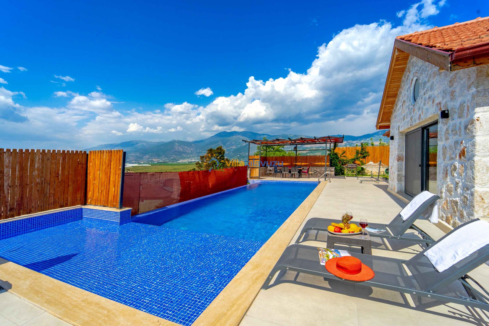 -Villamızın havuz terası korunaklıdır.