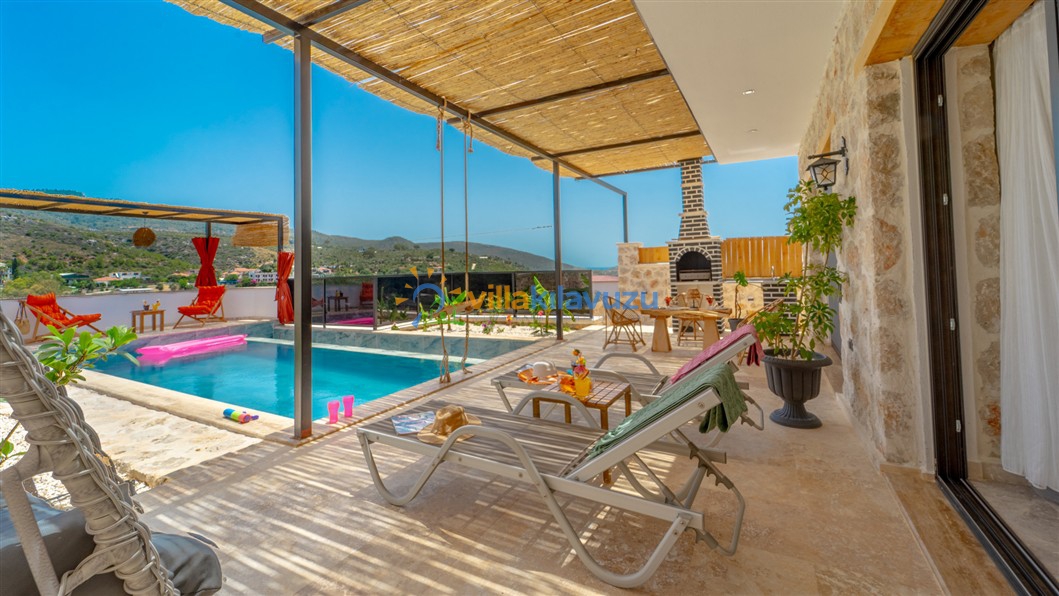 -Villamızın havuz terası korunaklıdır.