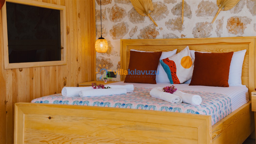 -Villamız 1 yatak odasına sahip olup 2 kişilik konaklama kapasitesine sahiptir.