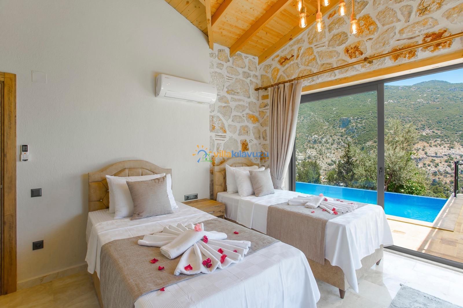 -Villamız 2 yatak odasına sahip olup 4 kişilik konaklama kapasitesine sahiptir.