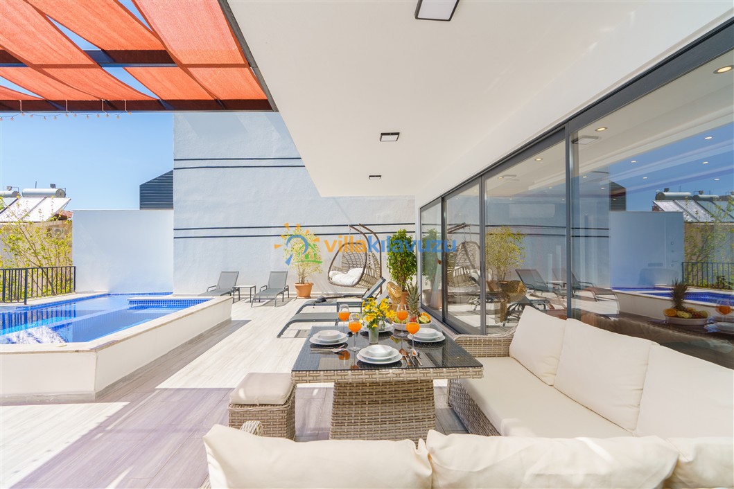 -Villamızın havuz terası korunaklıdır.
