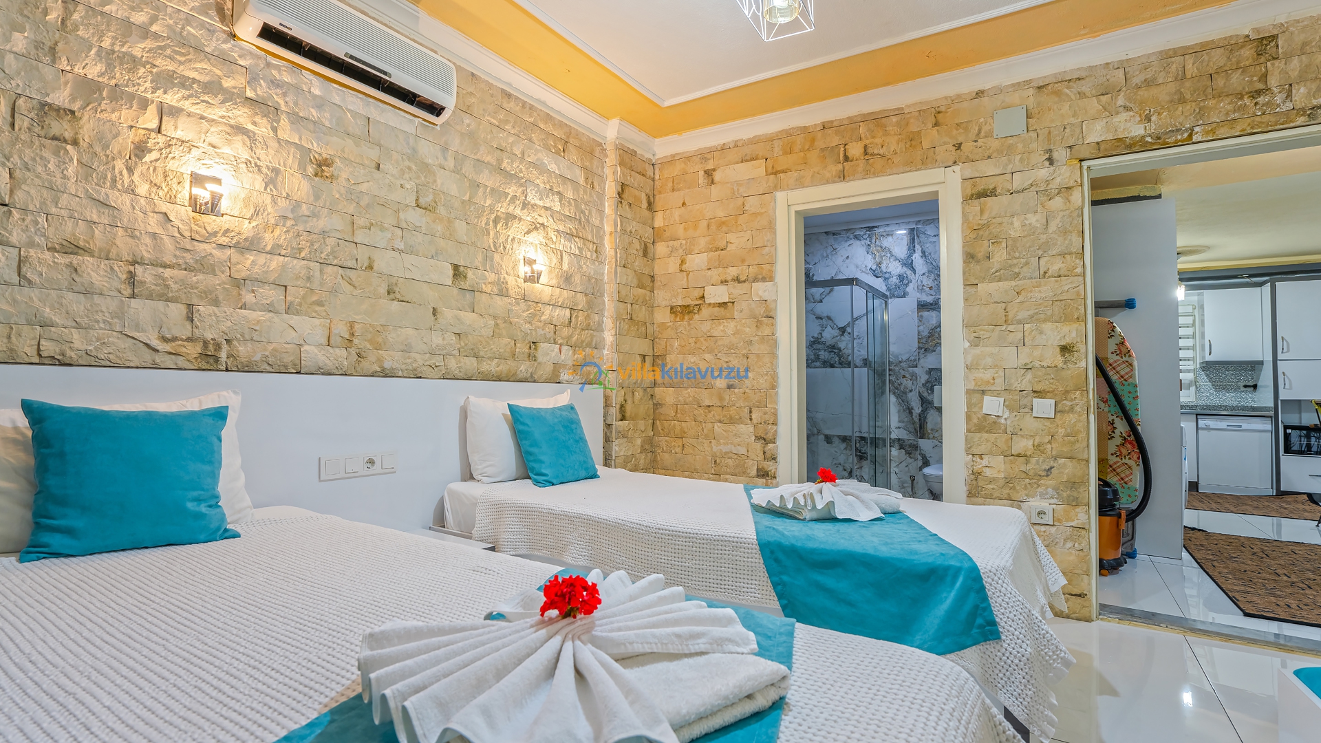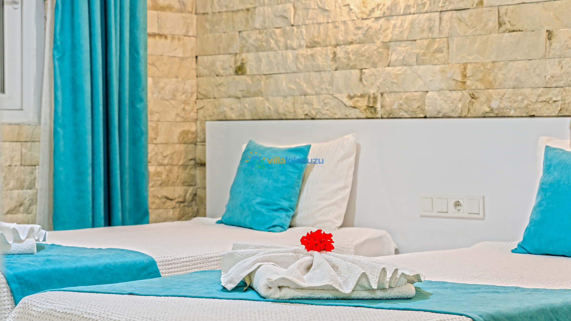 -Villamız 2 yatak odasına sahip olup 4 kişilik konaklama kapasitesine sahiptir.