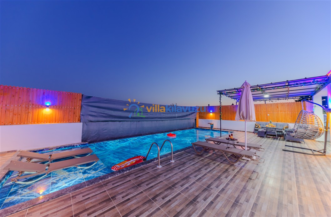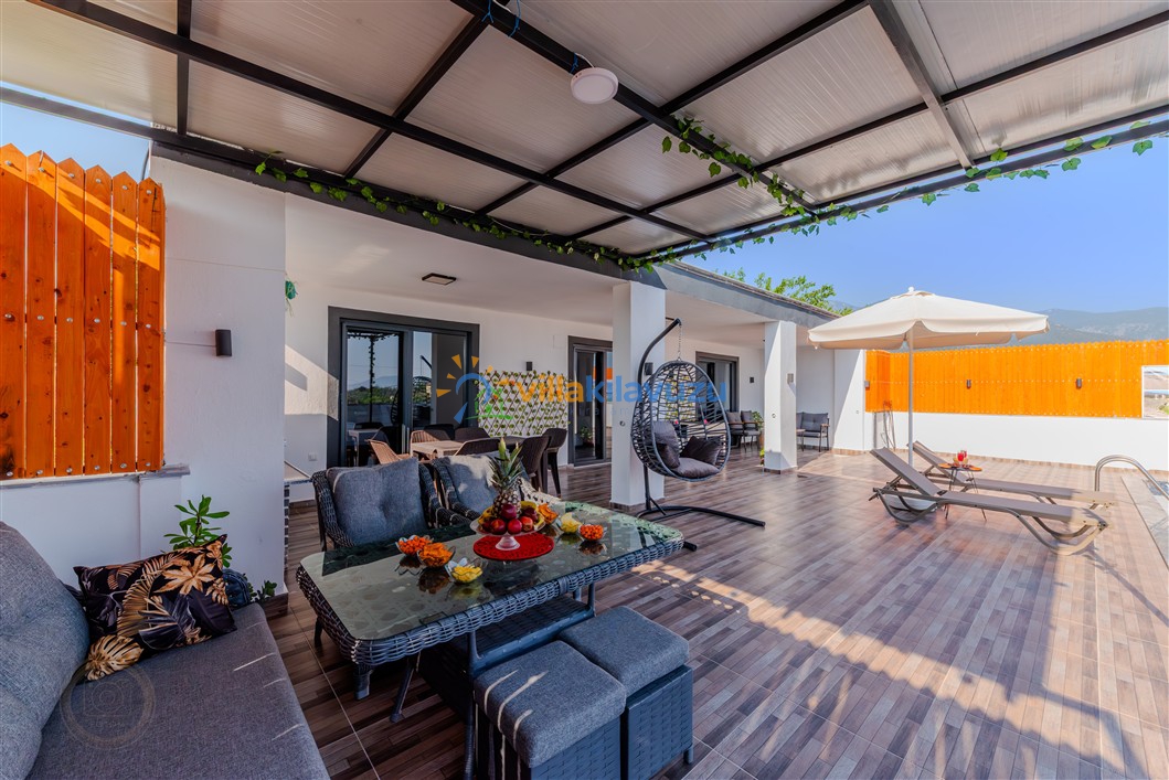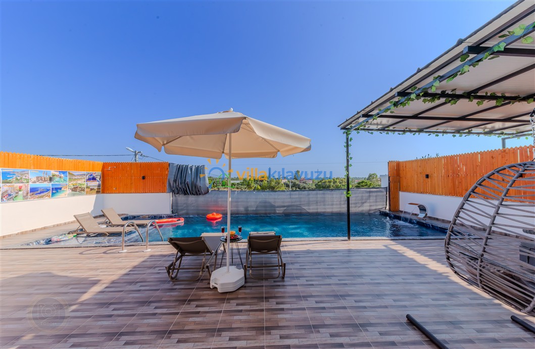 -Villamızın havuz terası korunaklıdır.