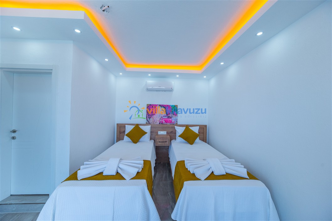 -Villamız 3 yatak odasına sahip olup 6 kişilik konaklama kapasitesine sahiptir.