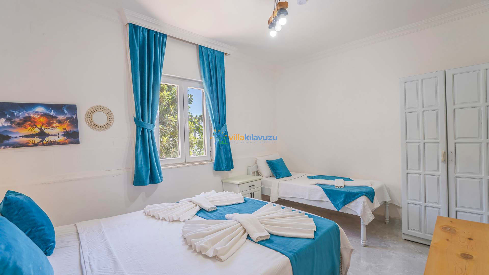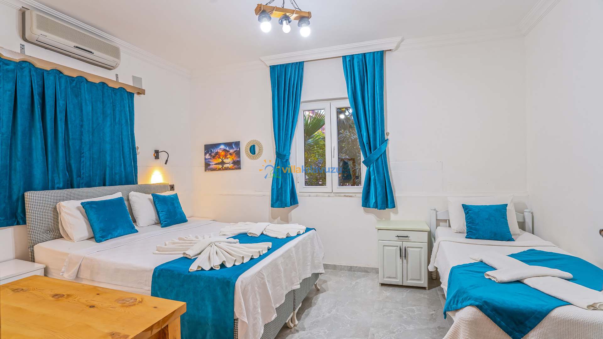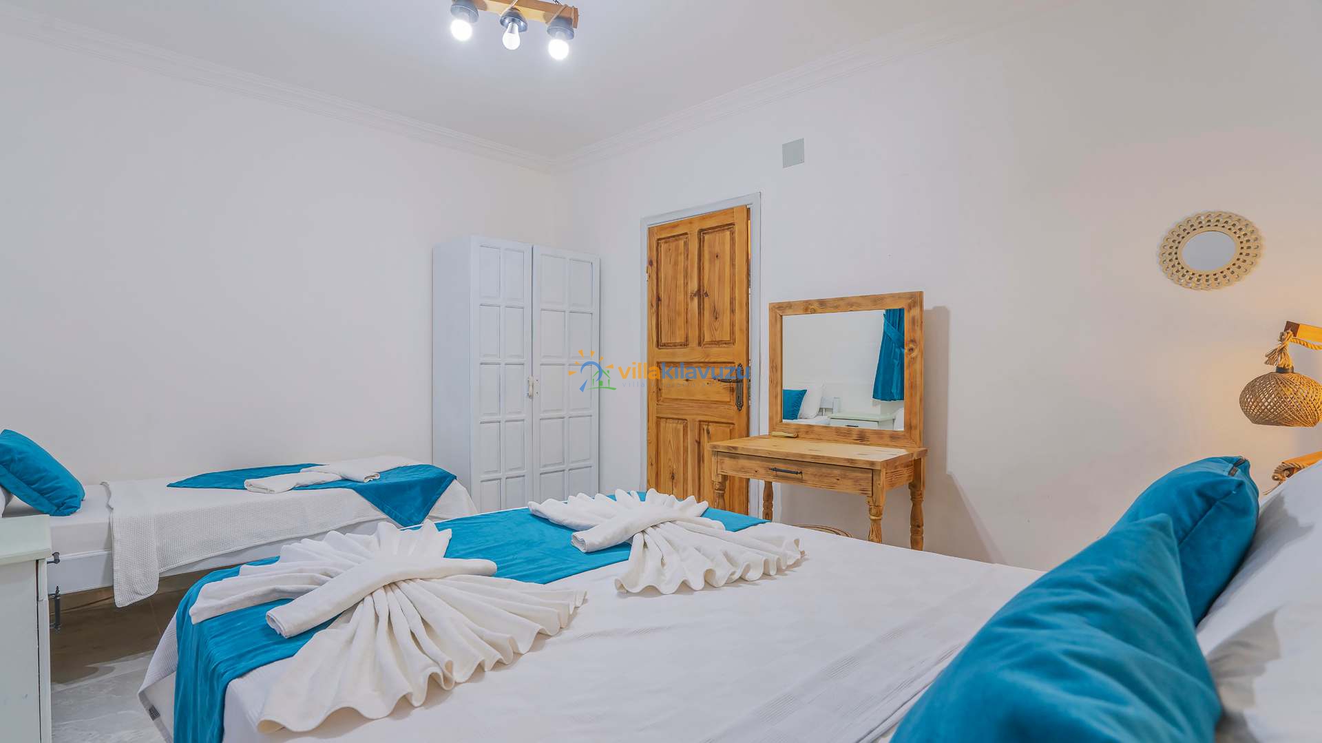 -Villamız 2 yatak odasına sahip olup 5 kişilik konaklama kapasitesine sahiptir.