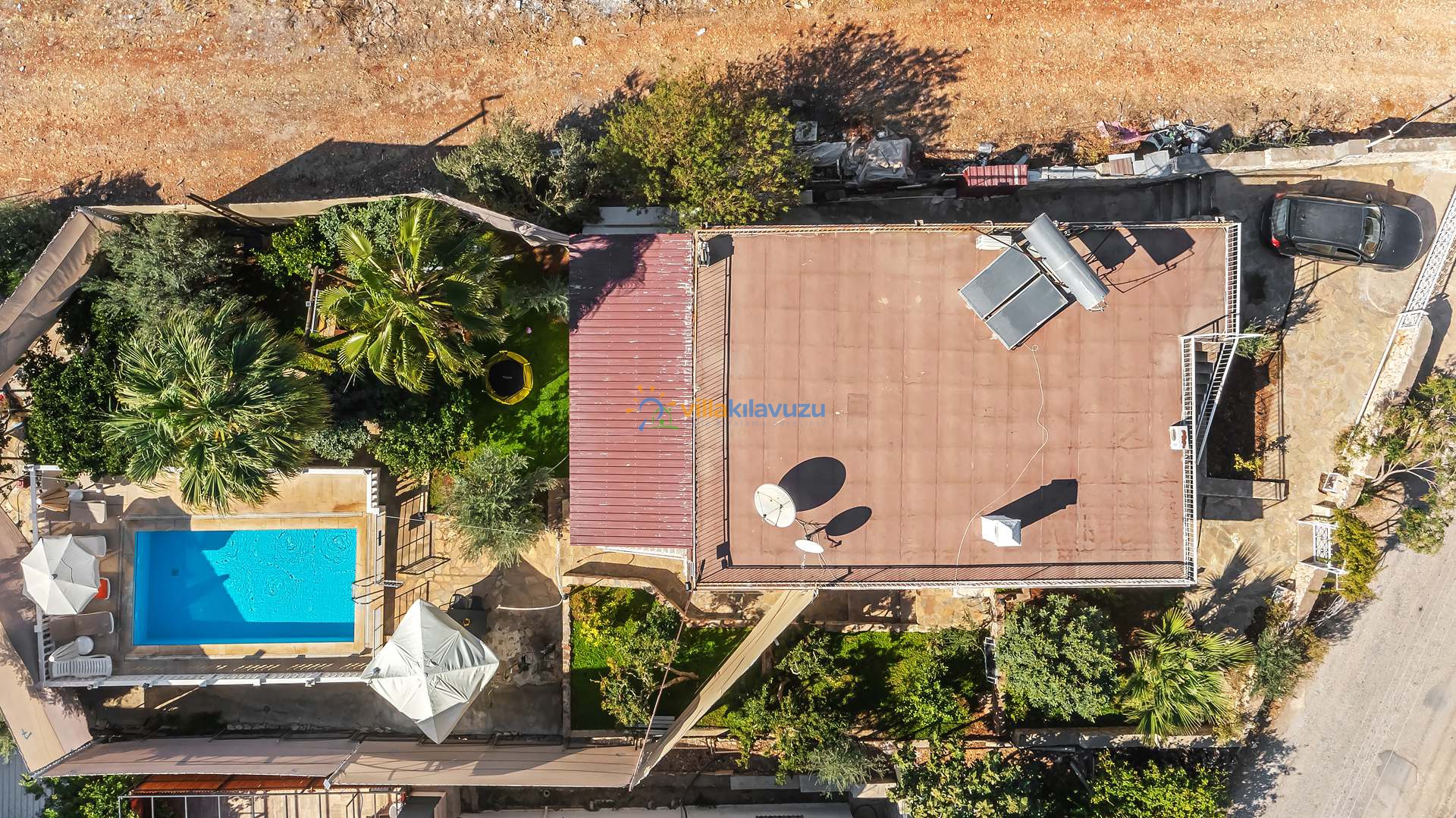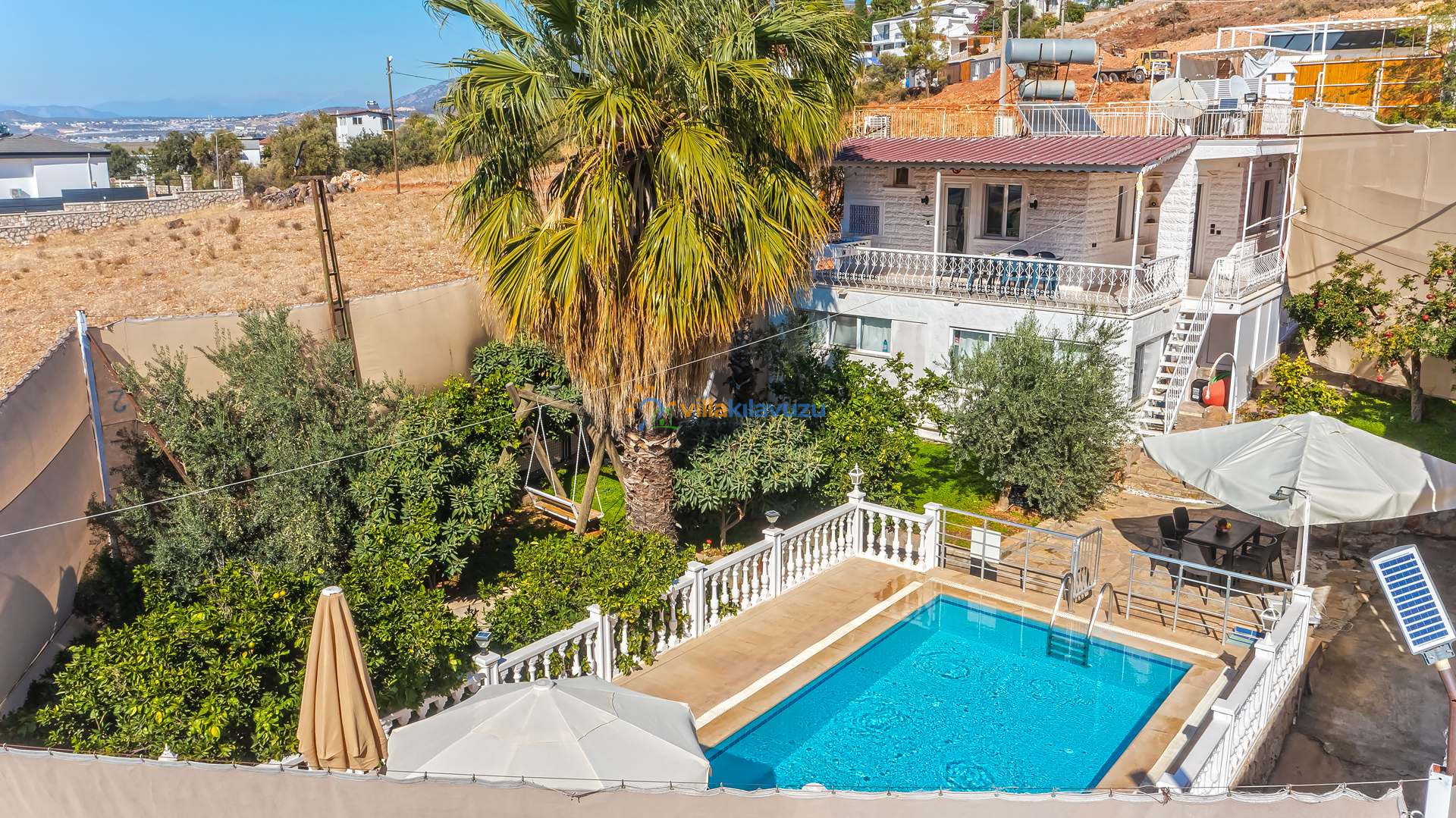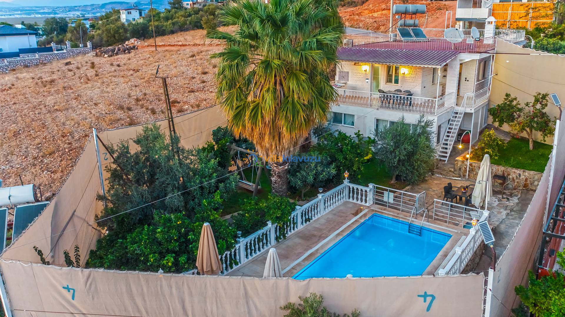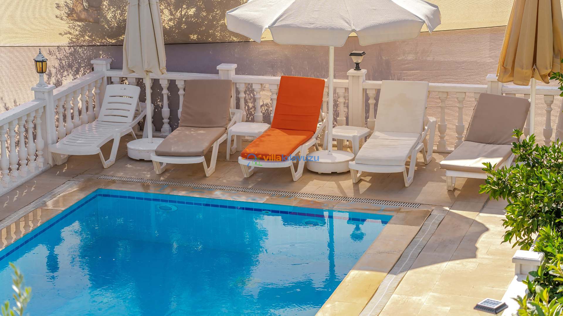 -Villamızın havuz terası korunaklıdır.