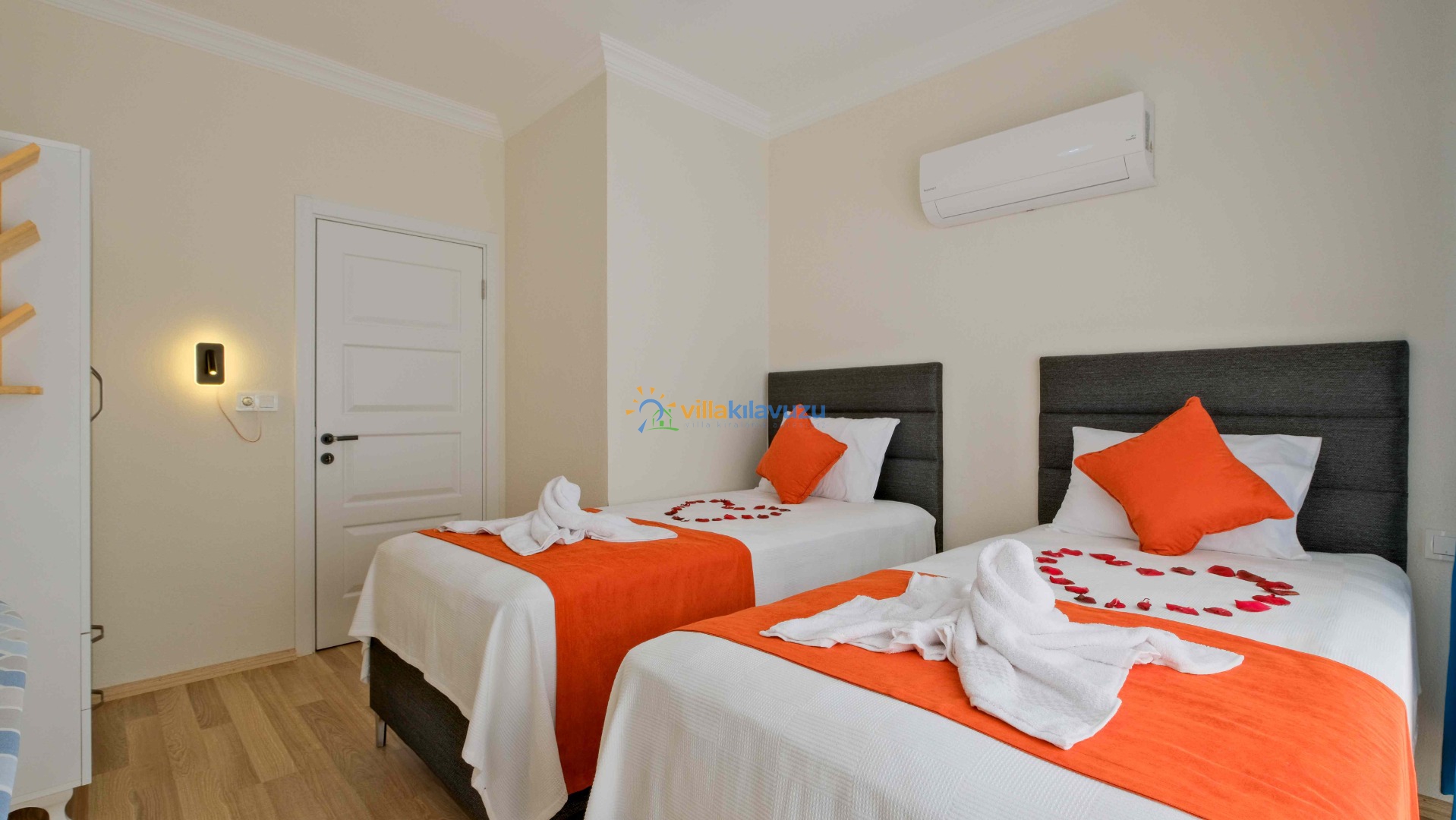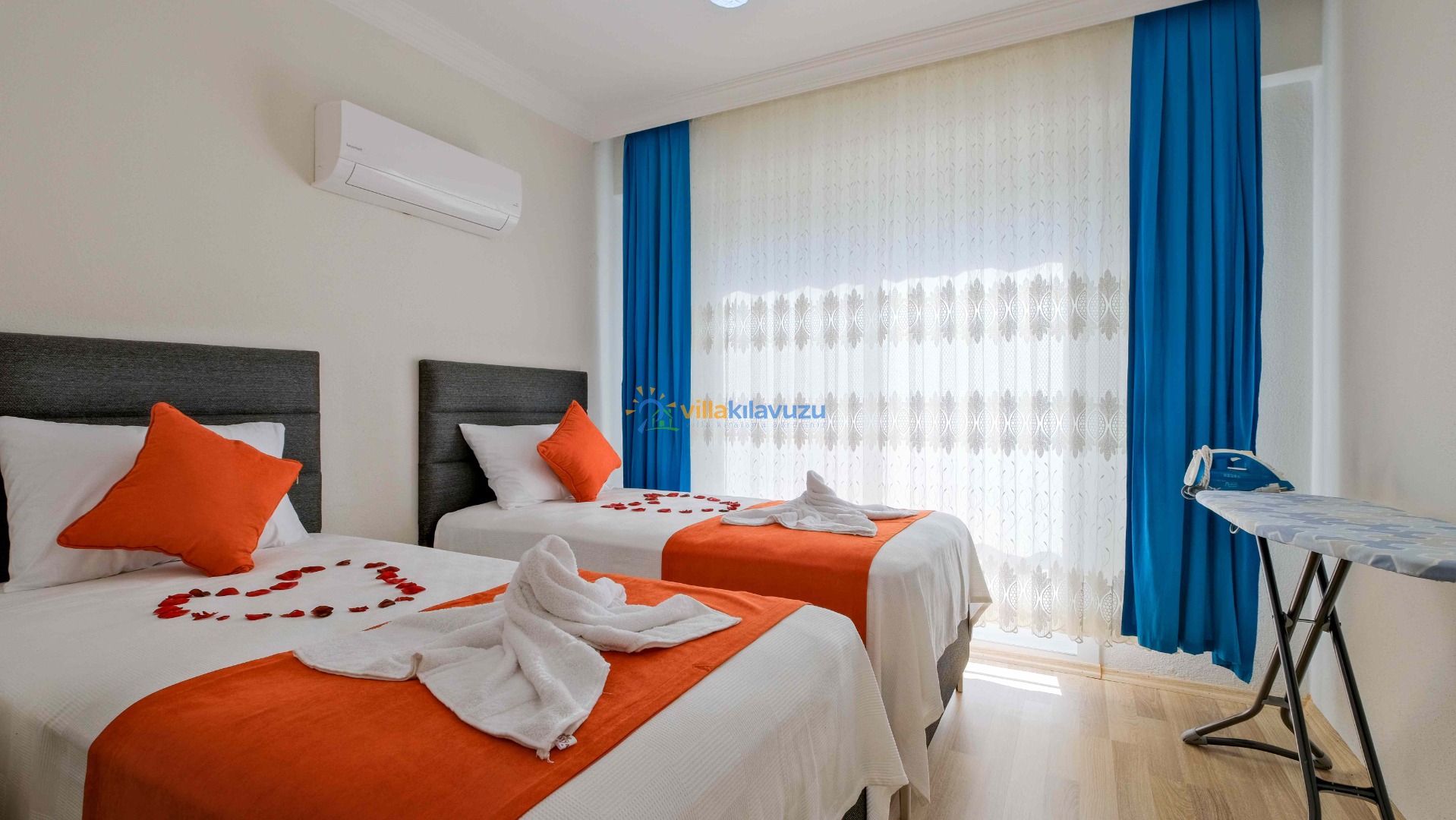 -Villamız 3 yatak odasına sahip olup 6 kişilik konaklama kapasitesine sahiptir.