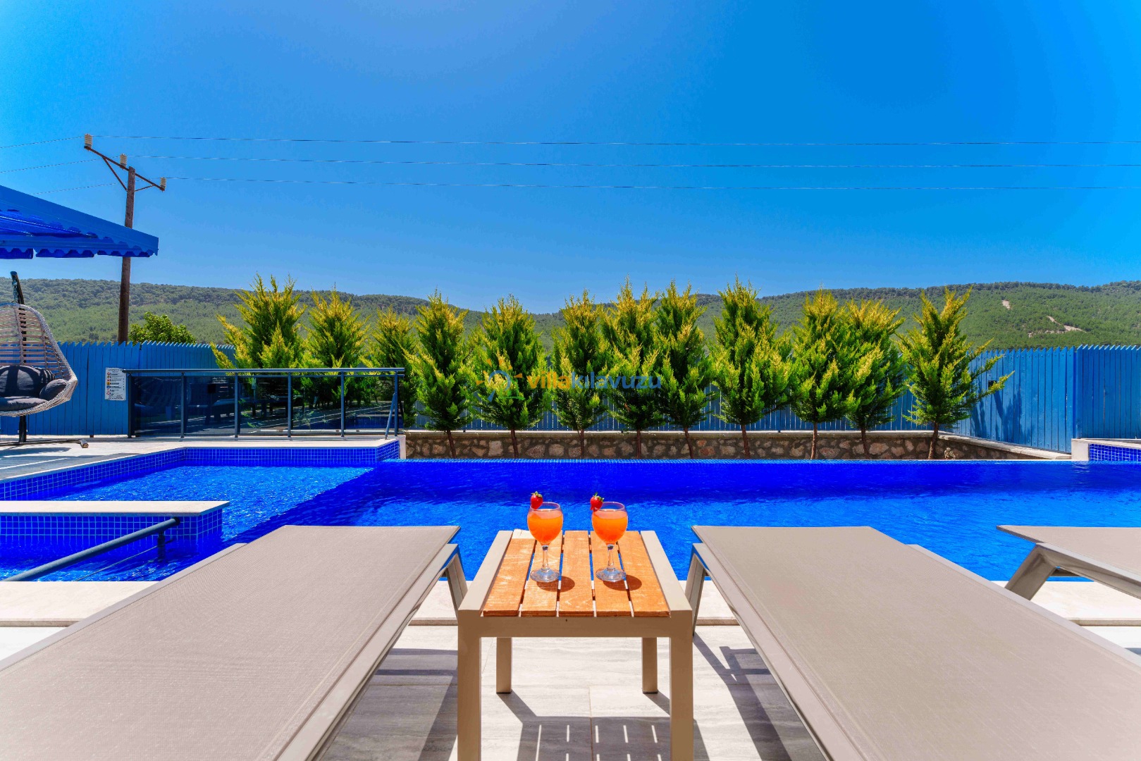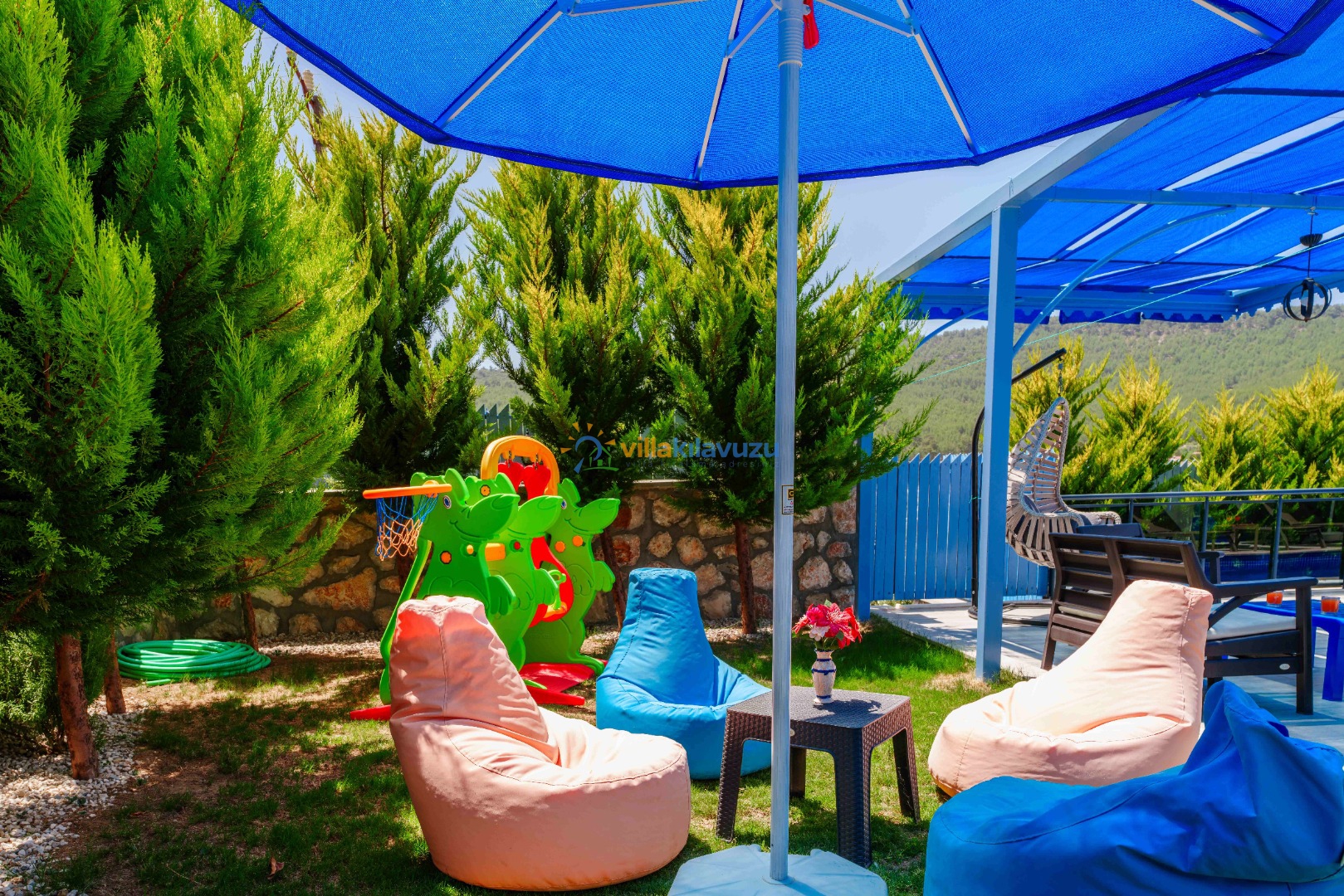 -Villamızın havuz terası korunaklıdır.