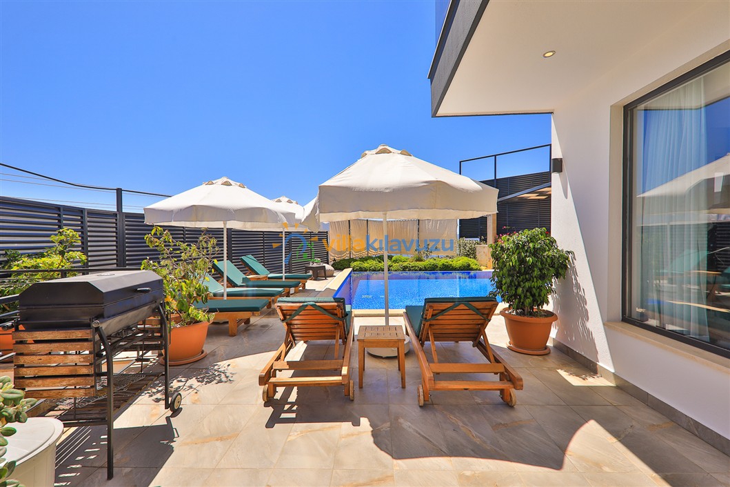 -Villamızın havuz terası korunaklıdır.