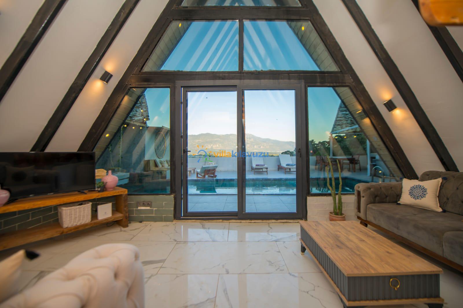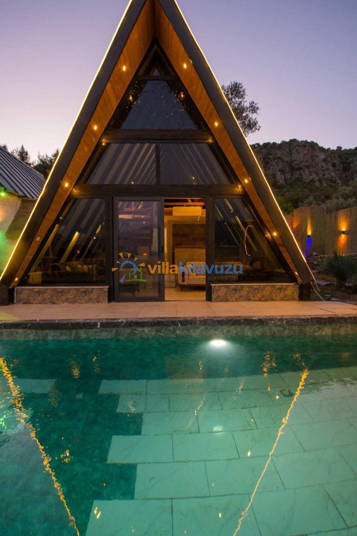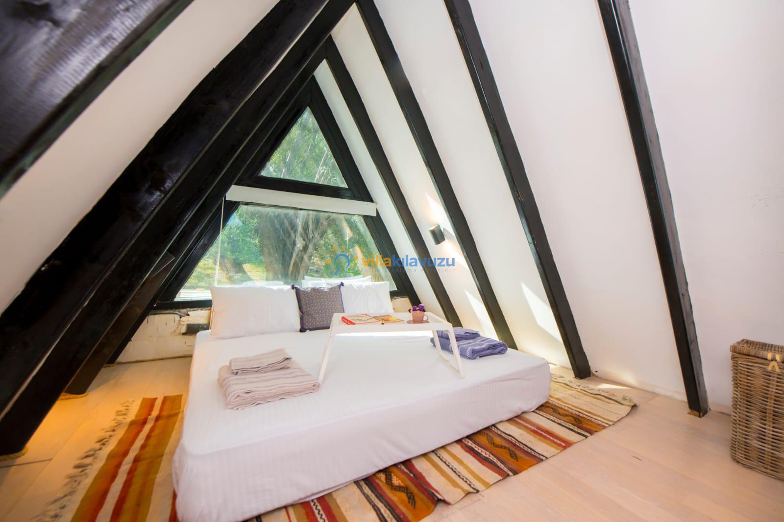 Not: VİLLAMIZ 1 ÜÇGEN BUNGALOV VE 1 NORMAL EV TİPİ BUNGALOVDAN OLUŞMAKTADIR. ÜÇGEN BUNGALOV YAKLAŞIK 65 M2, NORMAL EV TİPİ BUNGALOV İSE YAKLAŞIK 30 M2'DİR. ÜÇGEN BUNGALOV EVİMİZİN YATAK BULUNAN ASMA KAT TAVANI OLDUKÇA ALÇAKTIR