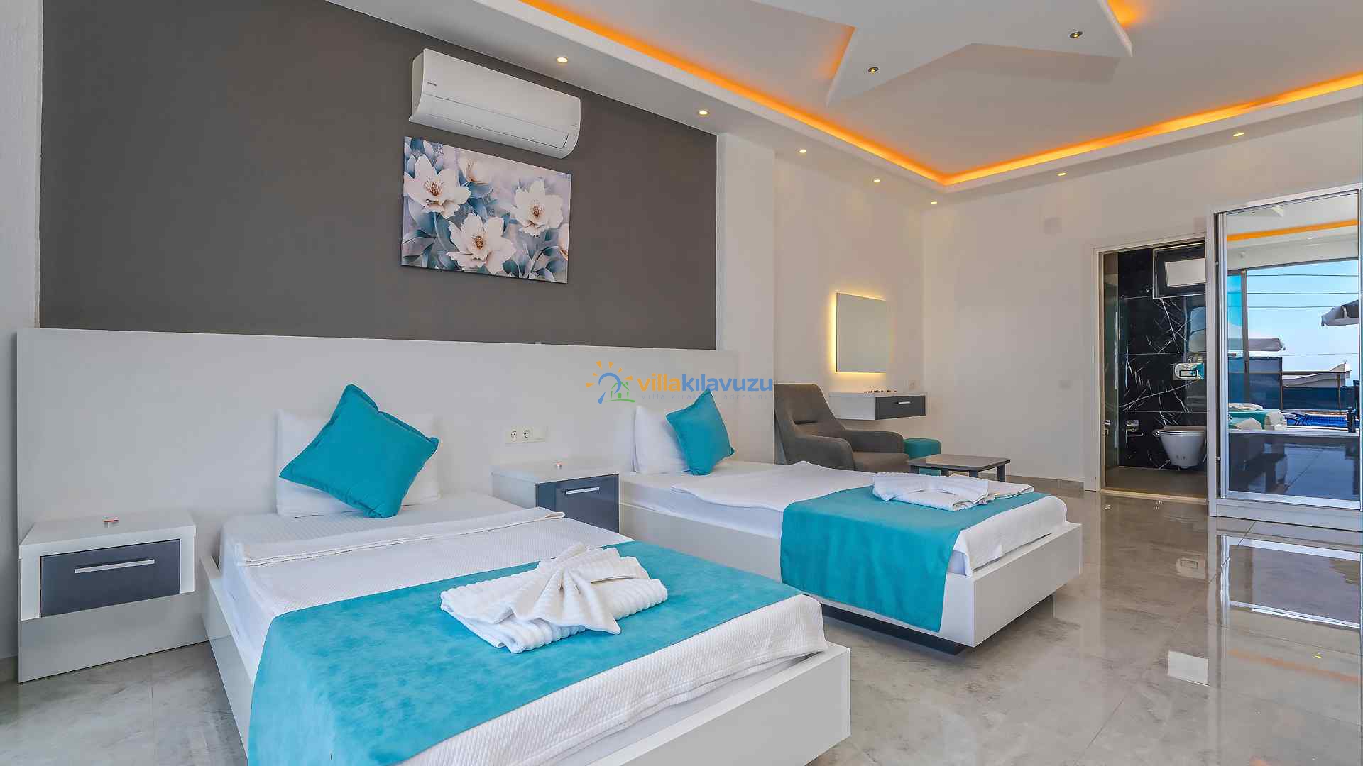 -Villamız 2 yatak odasına sahip olup 4 kişilik konaklama kapasitesine sahiptir.