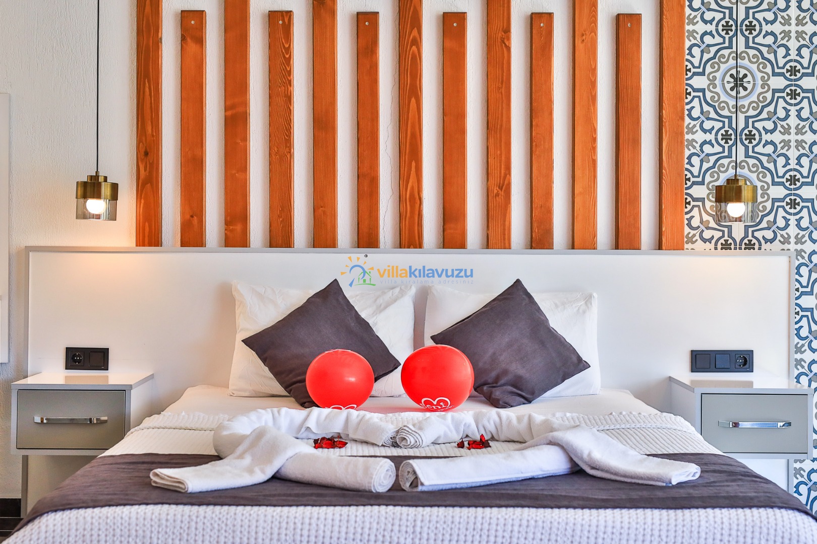 -Villamız 1 yatak odasına sahip olup 2 kişilik konaklama kapasitesine sahiptir.