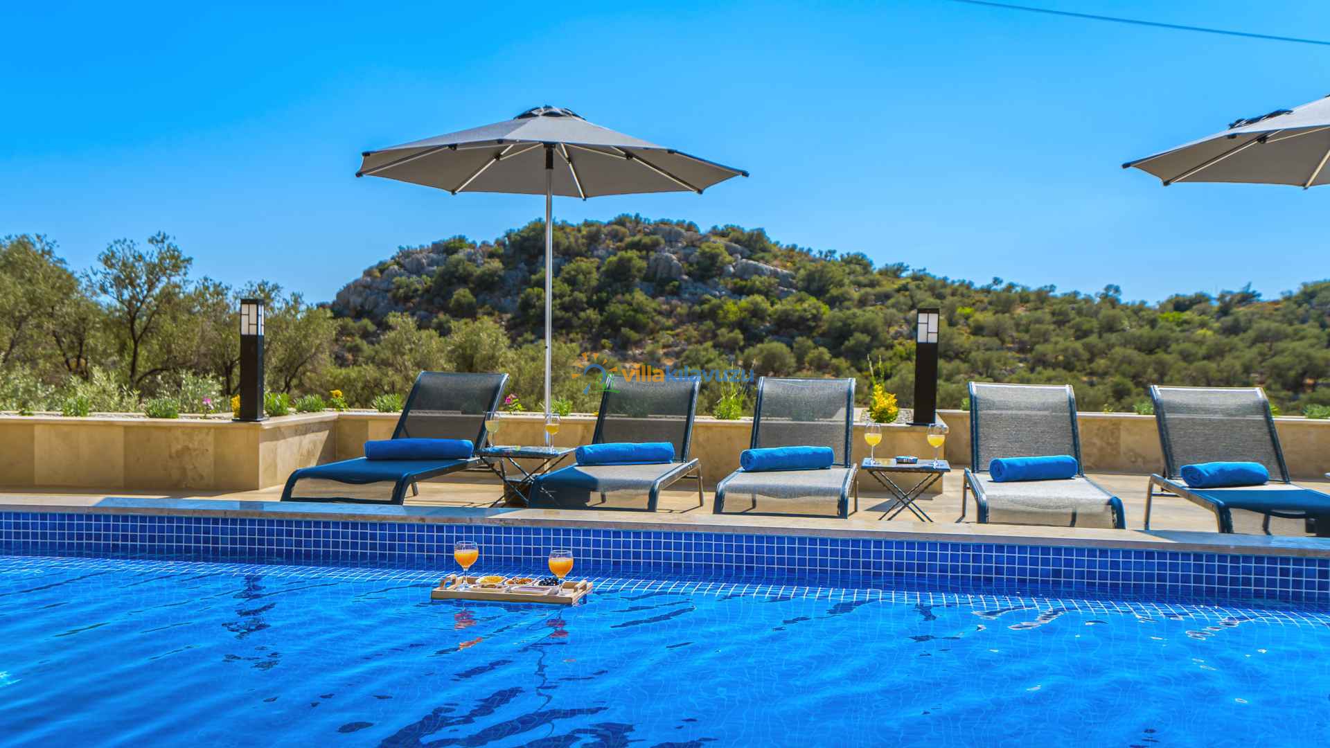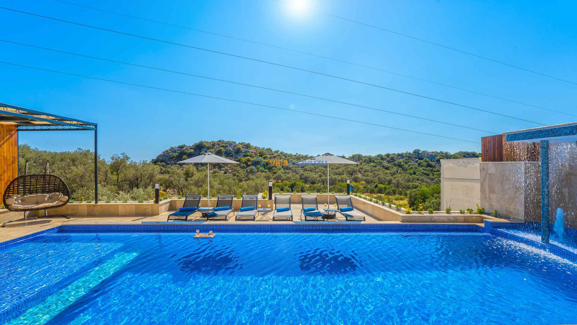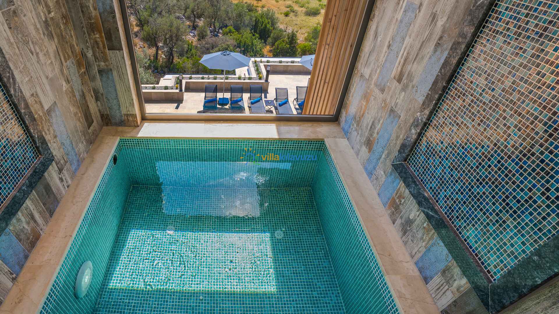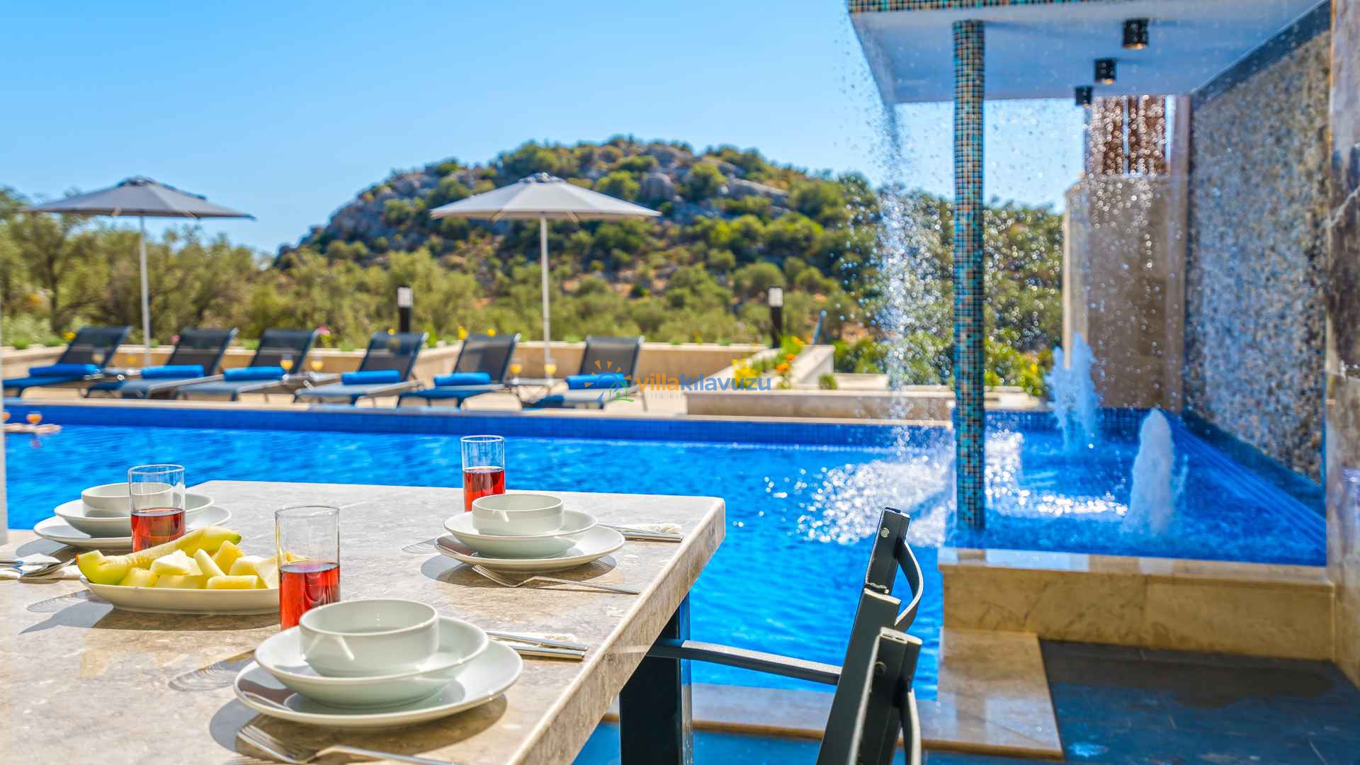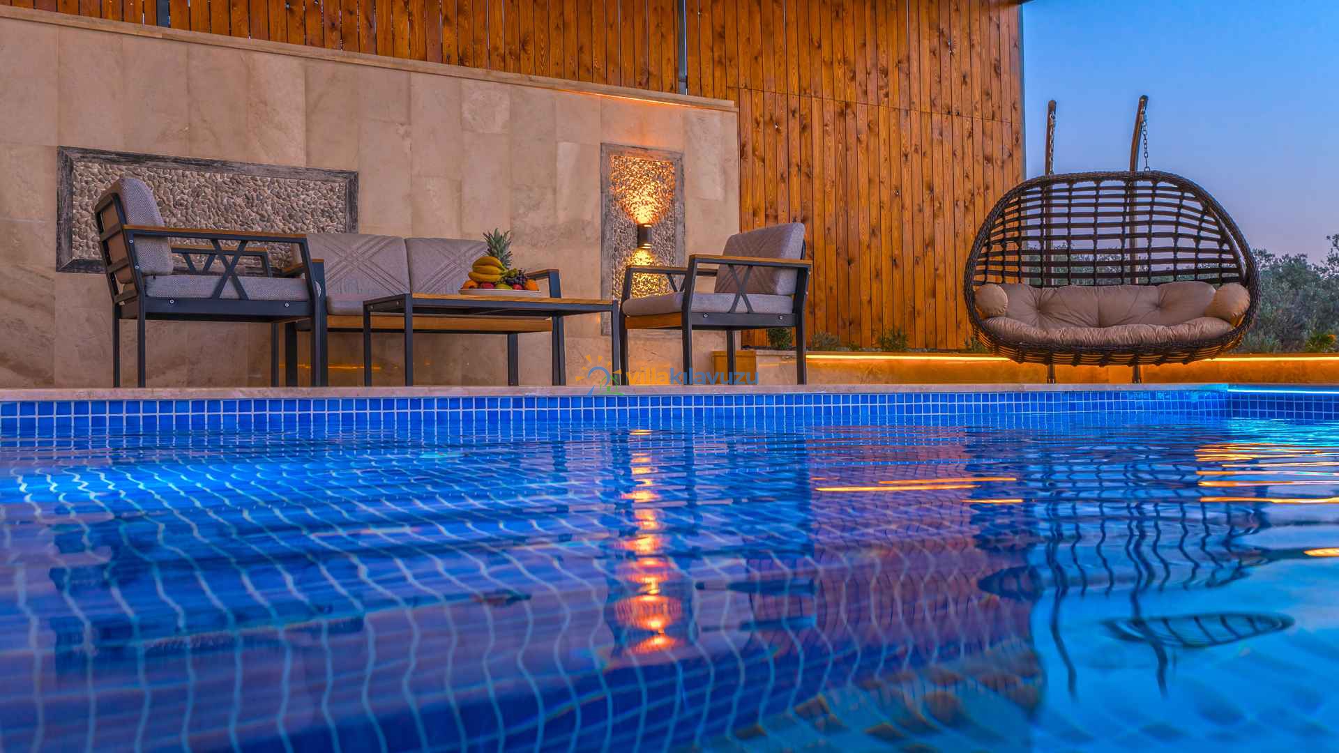 -Villamızın havuz terası korunaklıdır.