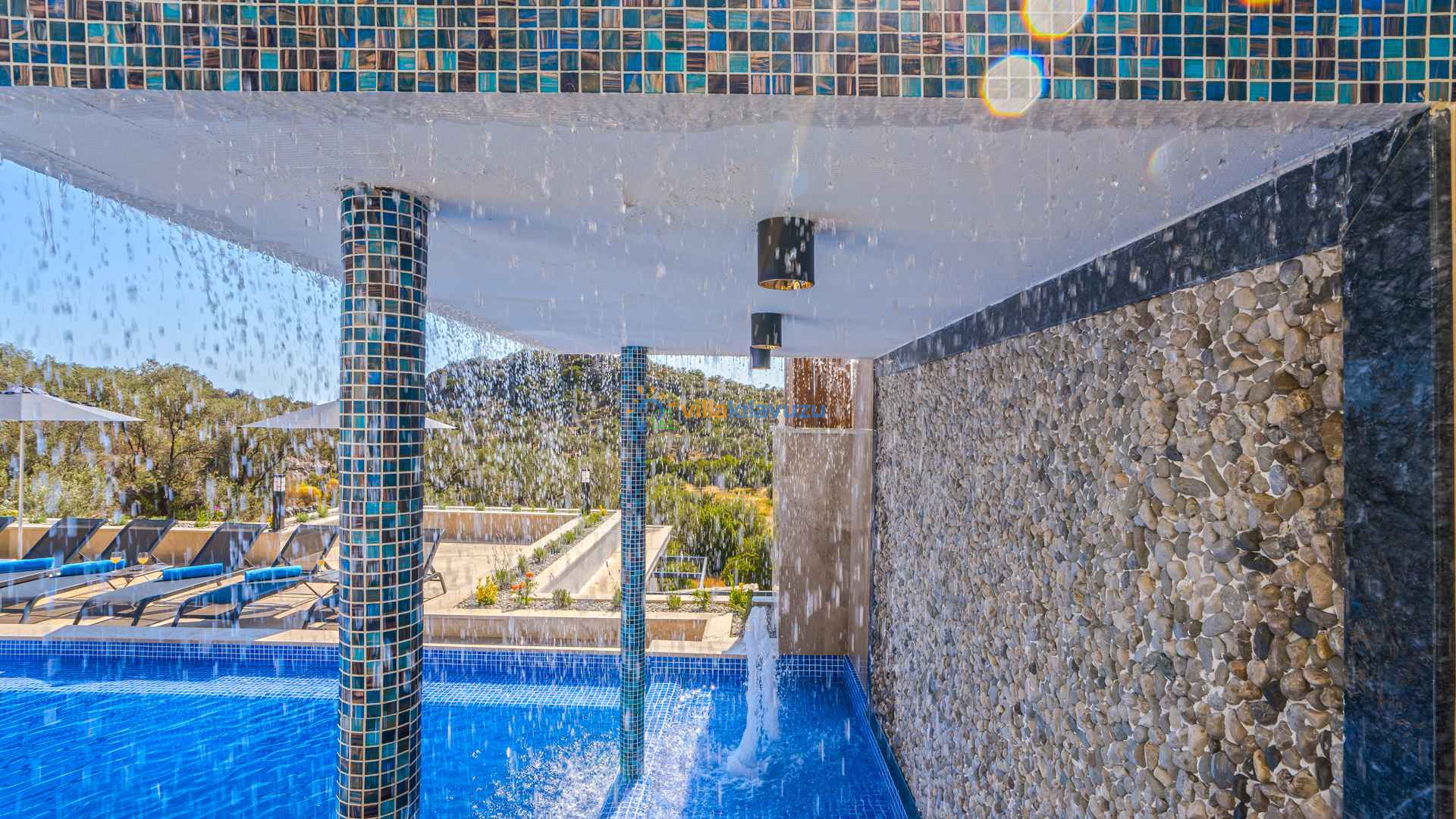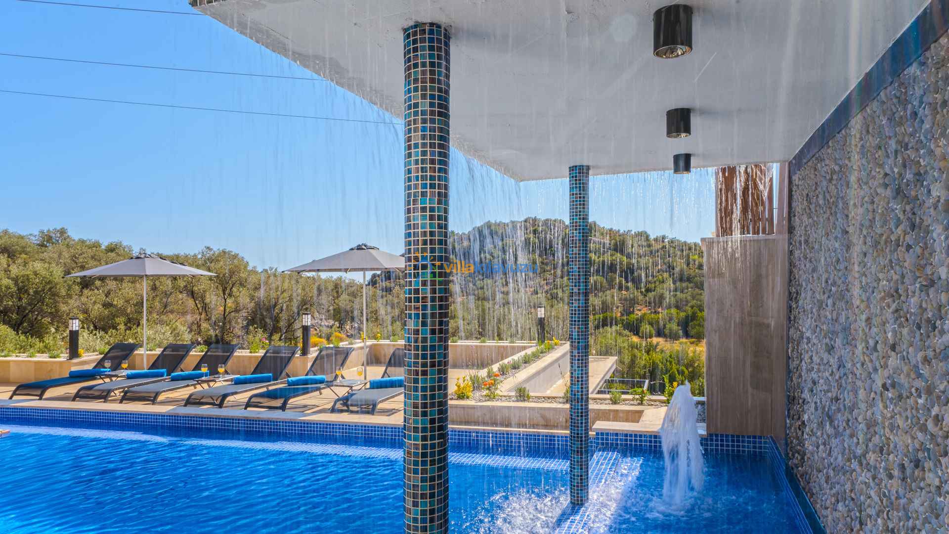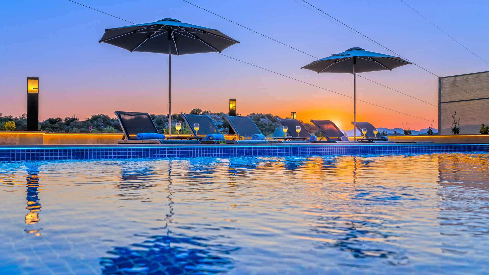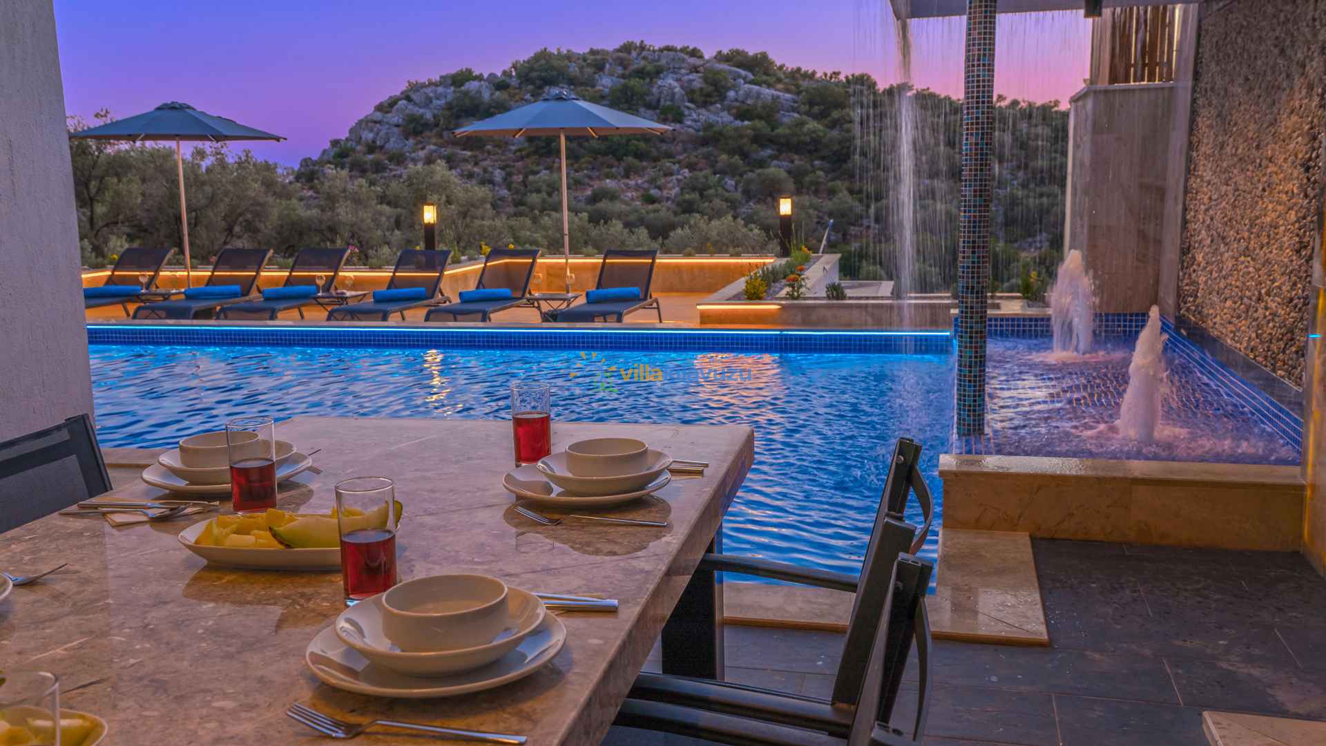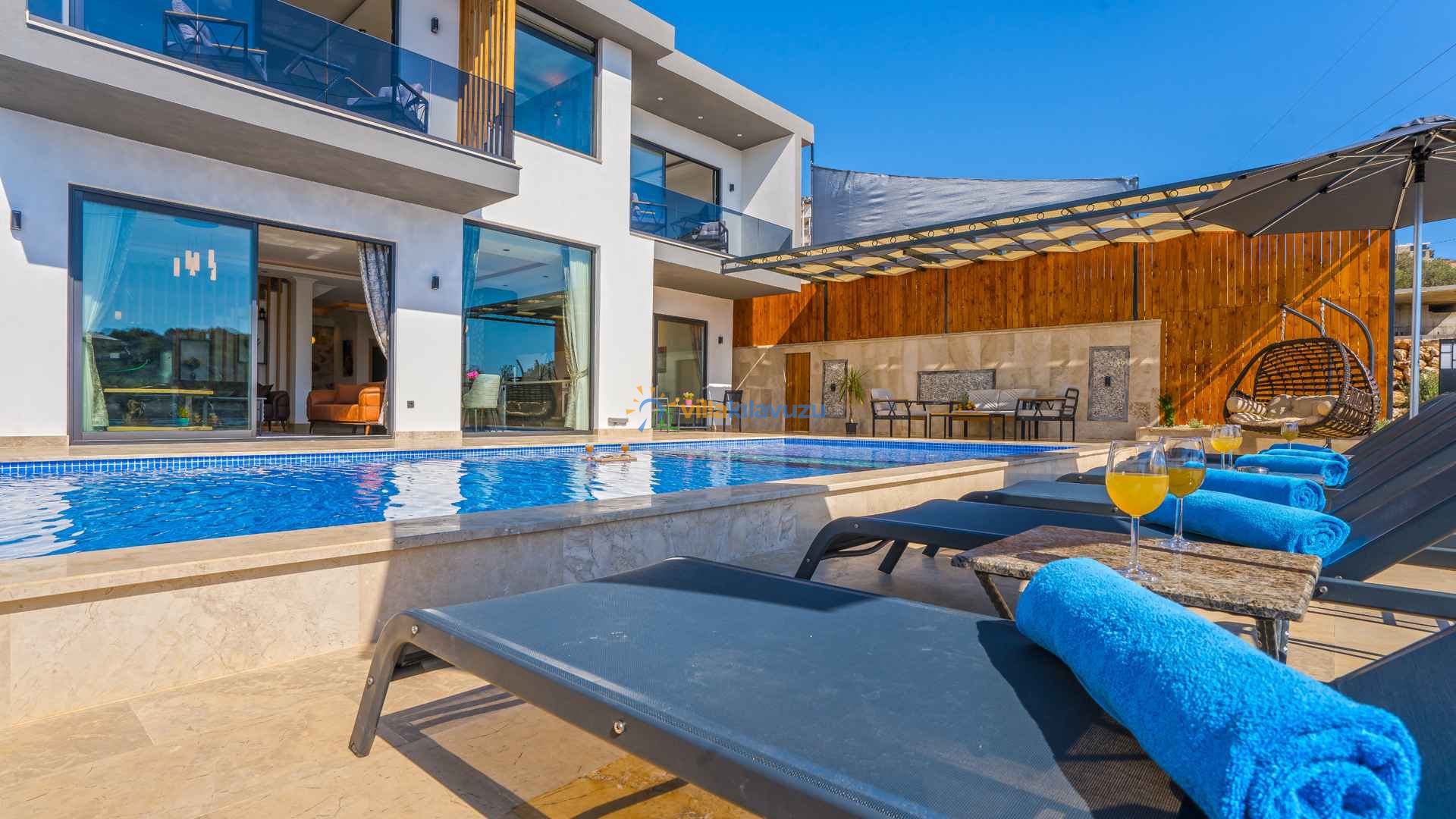 -Villamızın havuz terası korunaklıdır.