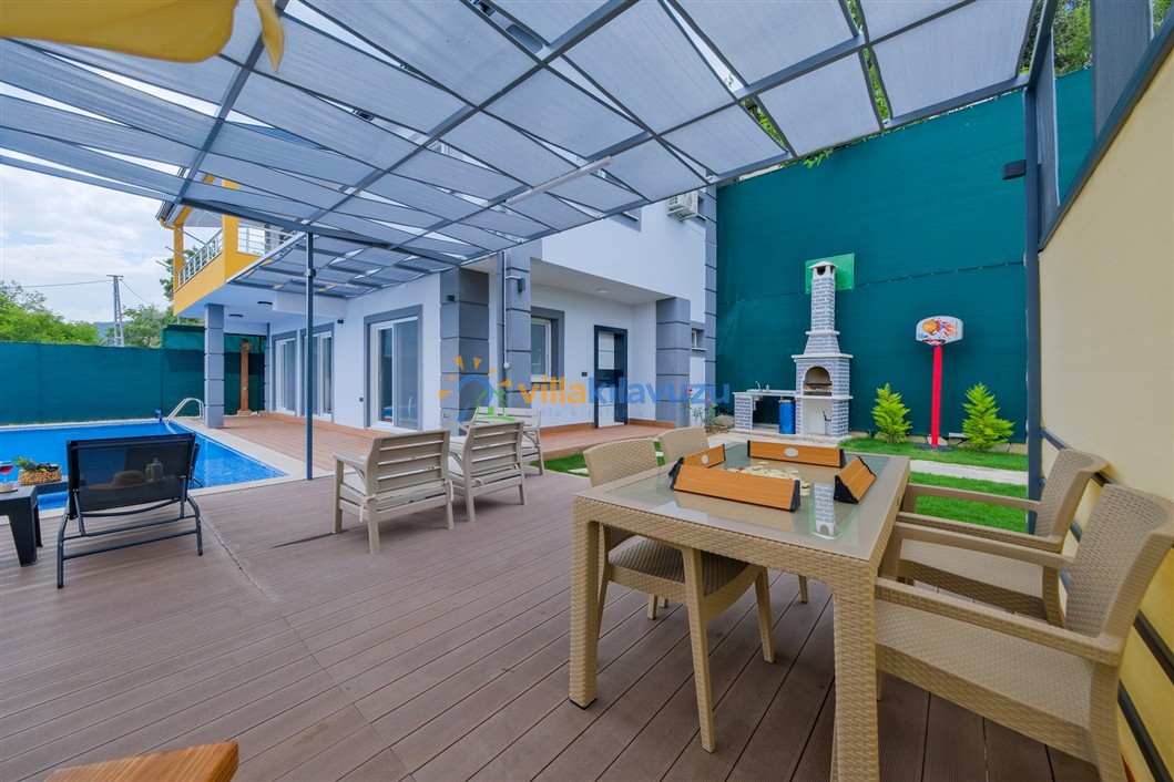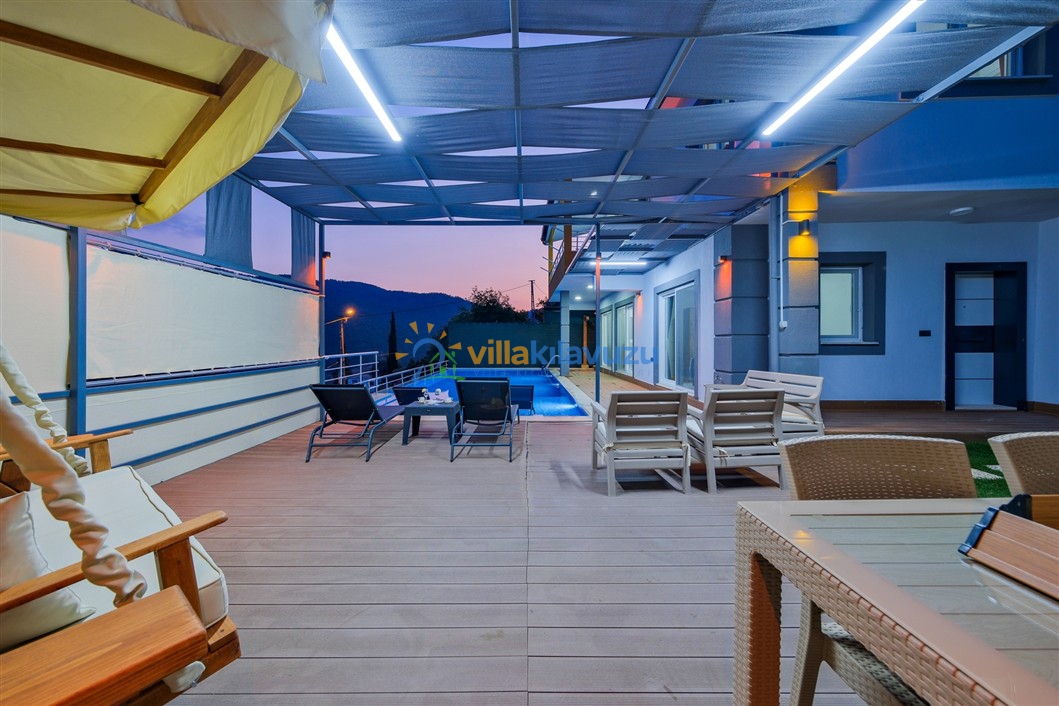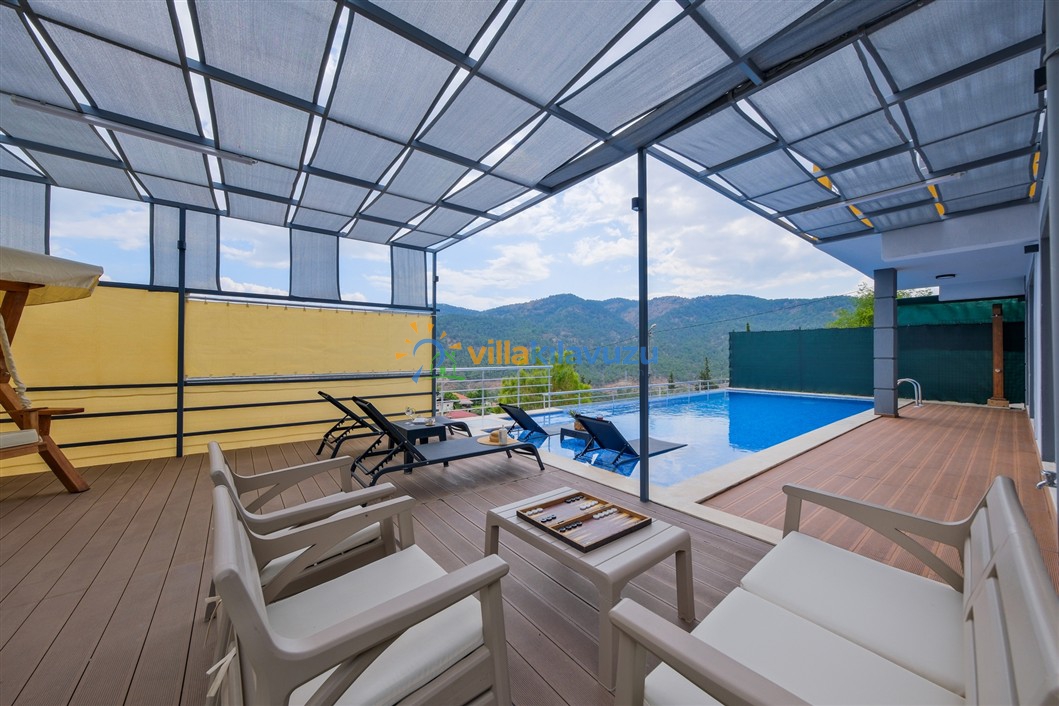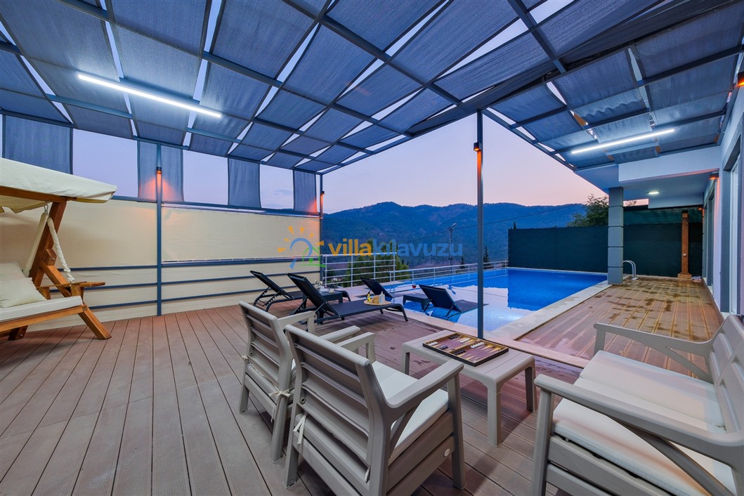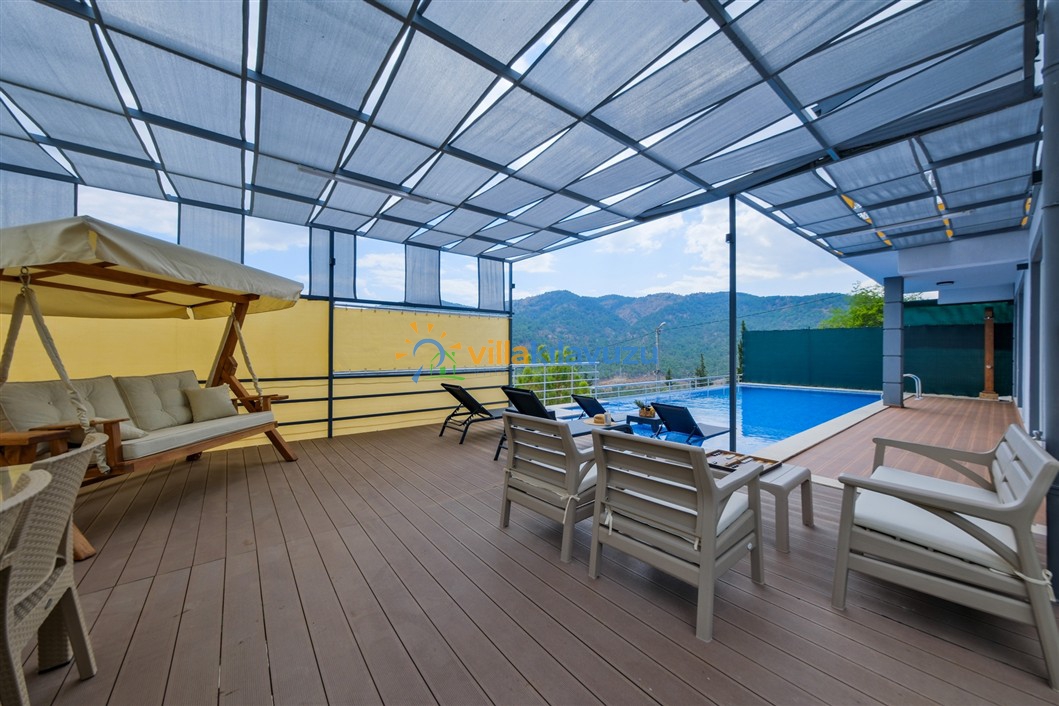 -Villamızın havuz terası korunaklıdır.