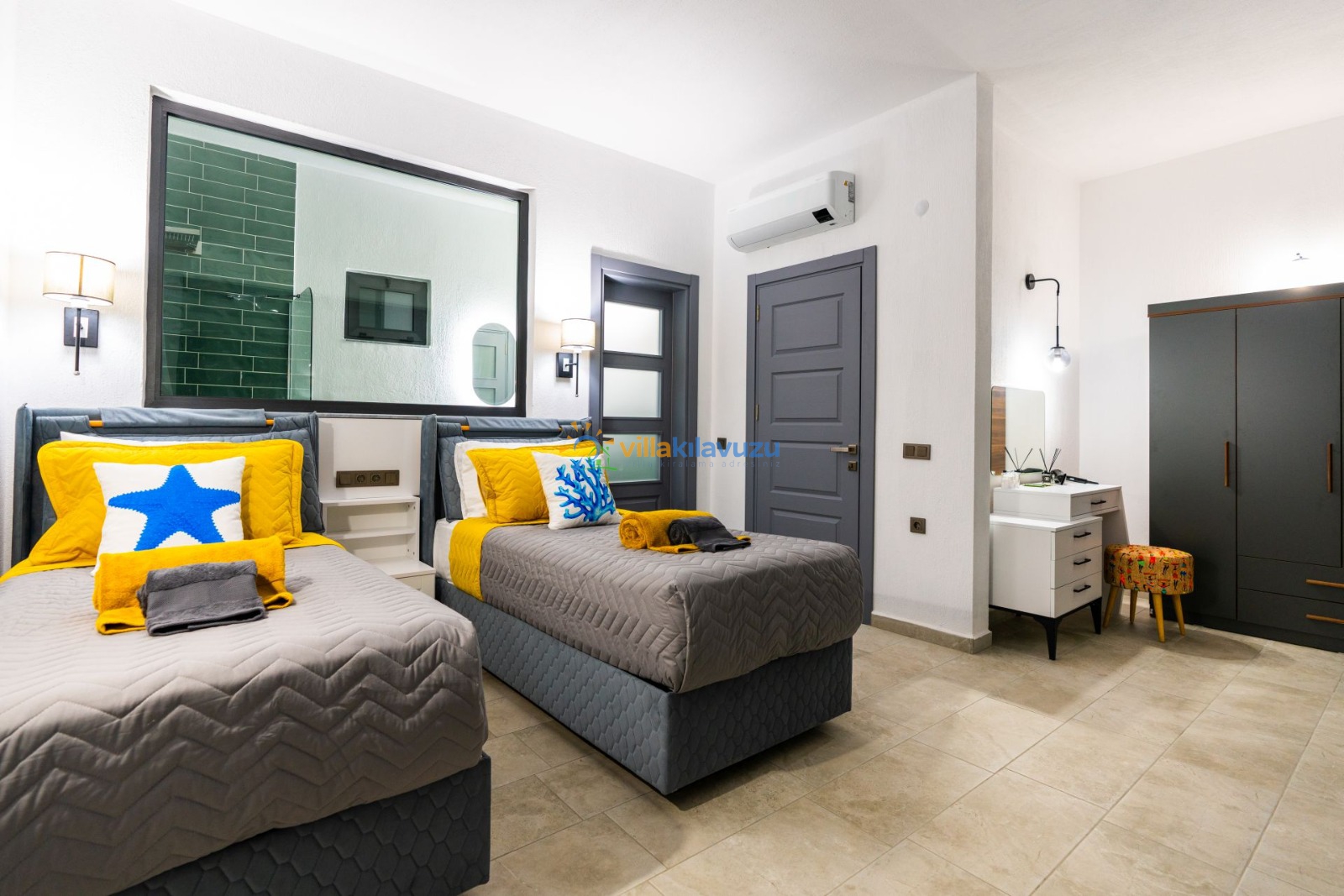 -Villamız 2 yatak odasına sahip olup 4 kişilik konaklama kapasitesine sahiptir.