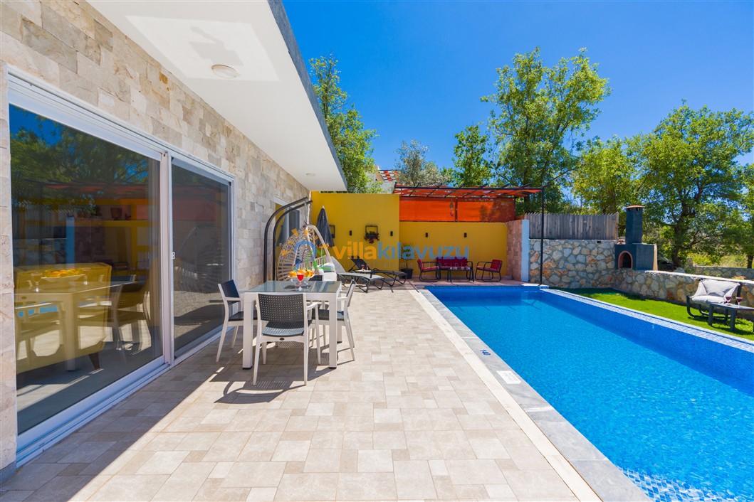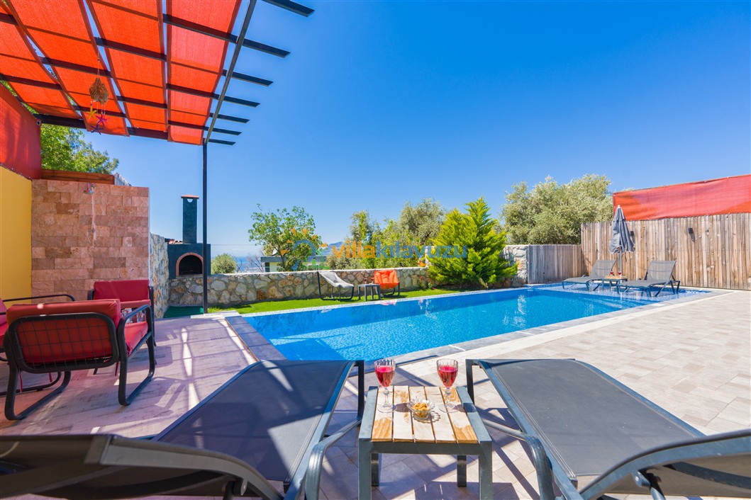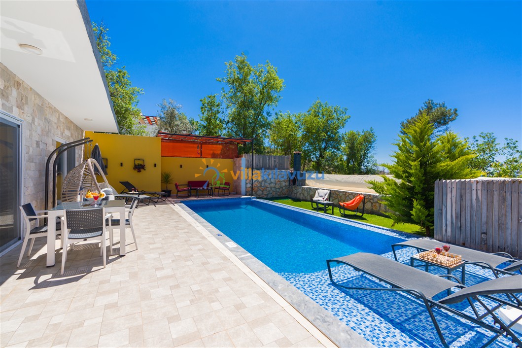 -Villamızın havuz terası korunaklıdır.
