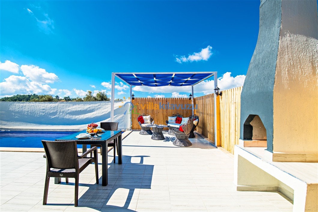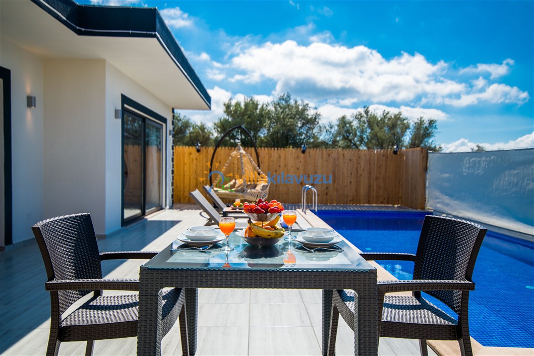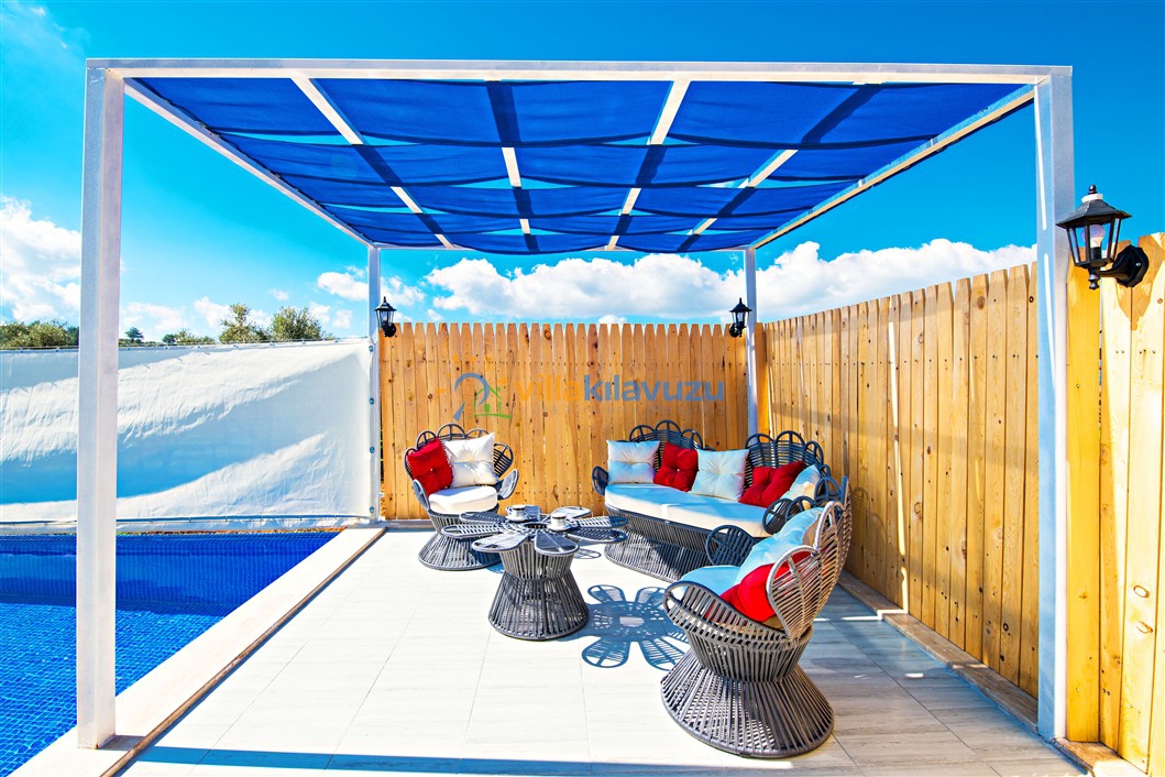 -Villamızın havuz terası korunaklıdır.